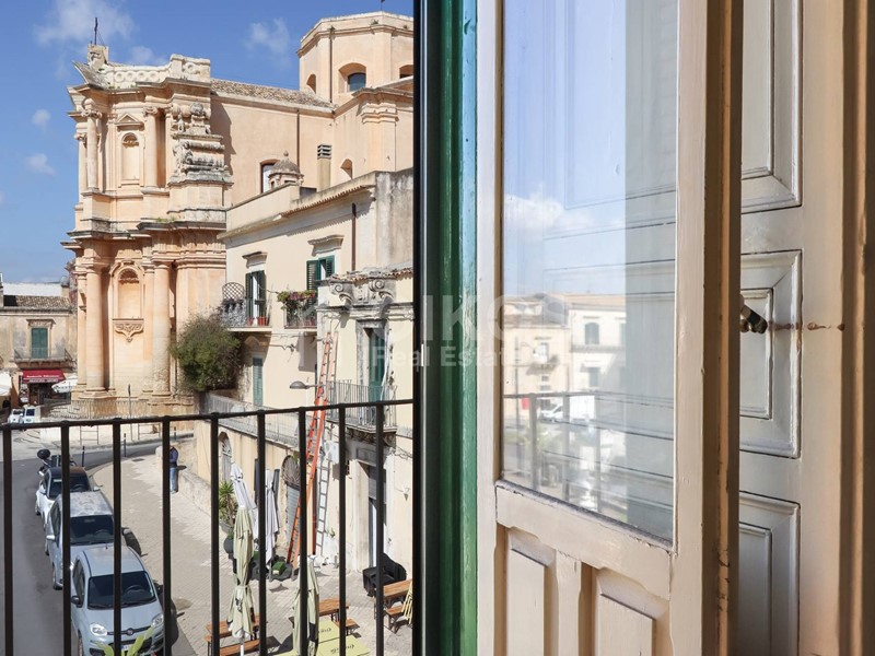 Al secondo piano troviamo un delizioso terrazzino che si affaccia sulla piazza del teatro, con vista privilegiata sulla scenografica facciata della Chiesa di San Domenico: un quadro barocco che muta colore con il passare delle ore. Allo stesso livello trova spazio una terrazza interna che amplia la vivibilità della casa, offrendo un angolo prezioso per momenti di convivialità o quiete privata.