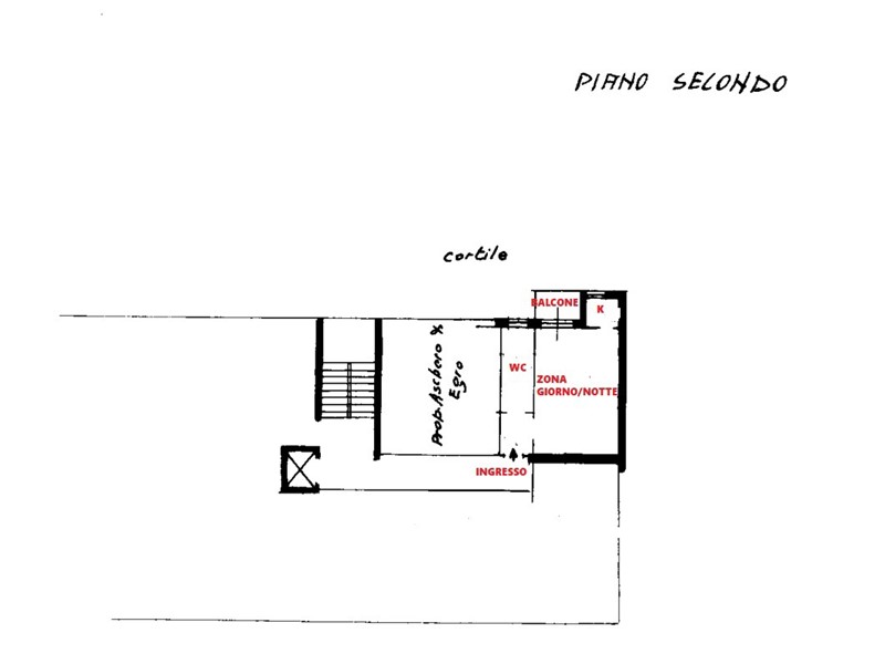 ingresso, zona giorno/notte, cucinotto separato, bagno finestrato e balcone.