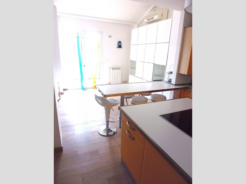 primo piano con accesso indipendente da ampia terrazza di 35mq, ottimo appartamento parzialmente arredato con finiture moderne di circa 75mq. salone openspace con cucina, camera matrimoniale, camera media, 2 bagni, ripostiglio, posto auto condominiale. termo autonomo, aria condizionata, pavimenti in parquet. possibilità contratti transitori o quattro anni più quattro.