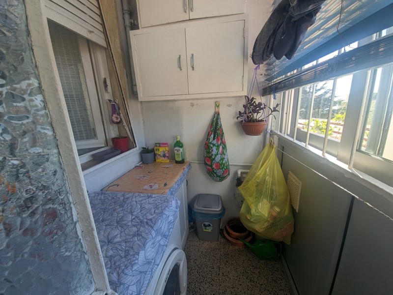 L'appartamento si compone di un soggiorno ampio e luminoso, un cucinotto, un bagno con vasca e un armadio a muro. Dalla zona giorno si accede a una veranda lunga che rappresenta un vero prolungamento dello spazio abitativo. Dalla stanza e dalla veranda si scorge il mare — una striscia di azzurro che accompagna la luce del giorno.