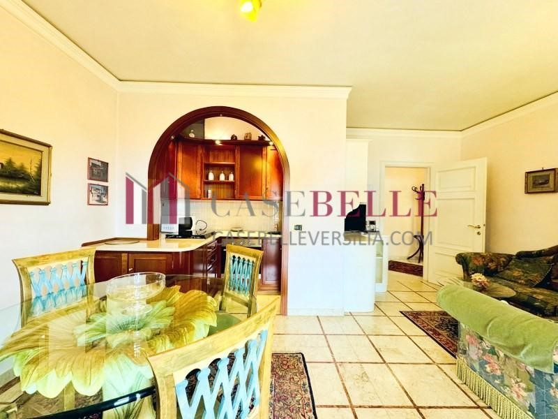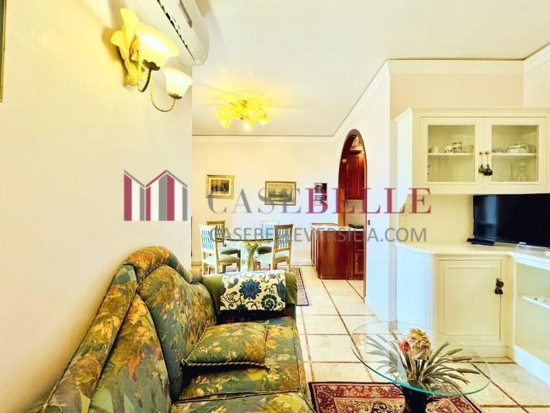 La zona giorno si presenta come un ampio open space con angolo cottura, caratterizzato da uno stile classico ed elegante, con arredi dal gusto tradizionale, pavimenti in marmo con inserti decorativi e un suggestivo arco che separa la cucina dalla zona pranzo. Il vero punto di forza della casa è la splendida terrazza esterna, spaziosa e perfettamente attrezzata con tavolo da pranzo, ideale per pranzi e cene all'aperto nelle calde serate estive, godendo della brezza marina.