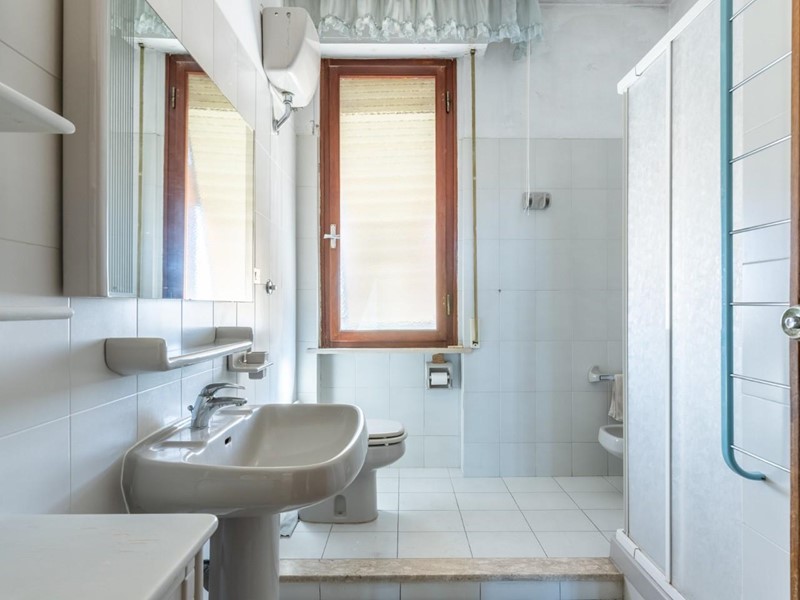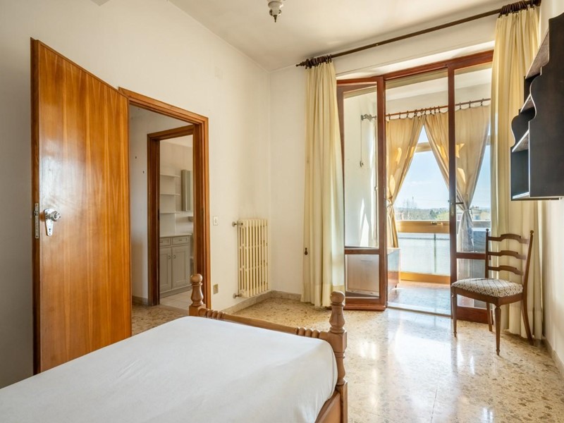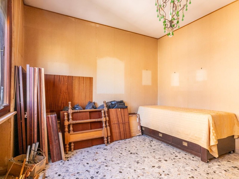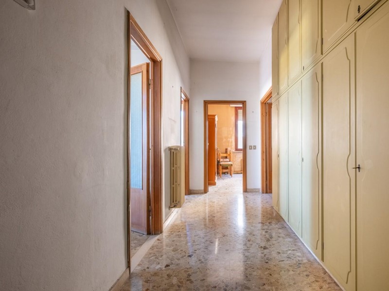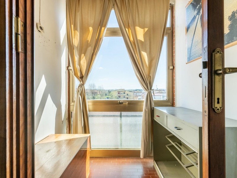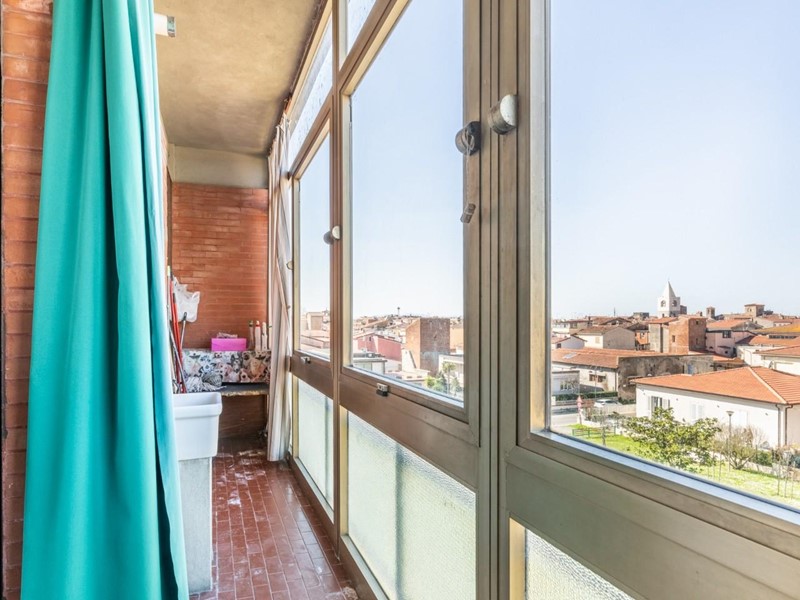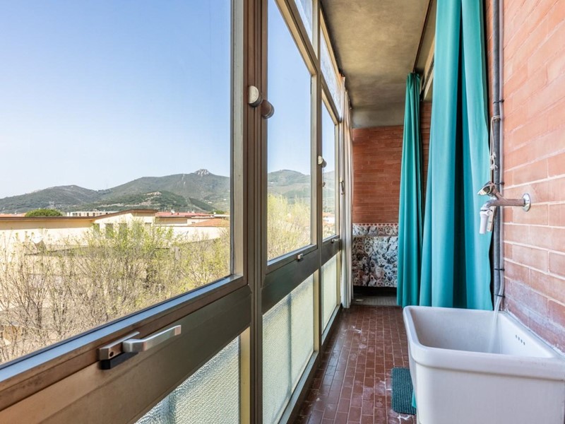 La casa, che è datata ma volendo subito abitabile, presenta un taglio tradizionale. La zona giorno è composta dall'ingresso con grande armadio a muro, dalla cucina abitabile con balcone verandato, da un comodo e spazioso ripostiglio e dal salone con doppia finestra e bella vista sul centro storico di Cascina e sui monti pisani. La zona notte composta da tre camere - due matrimoniali e una media con accesso ad altro balcone verandato - e il bagno finestrato. Al piano terra troviamo il garage.