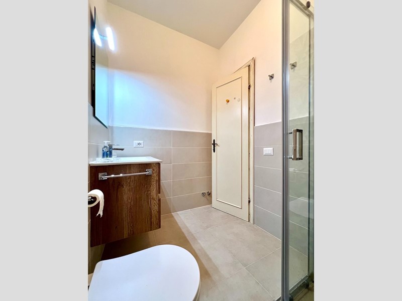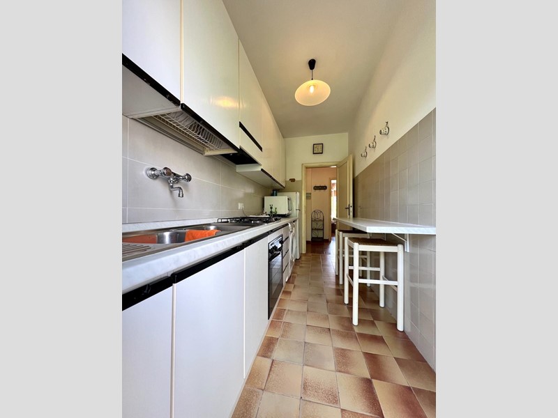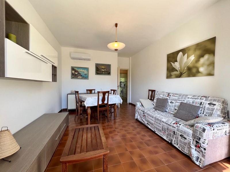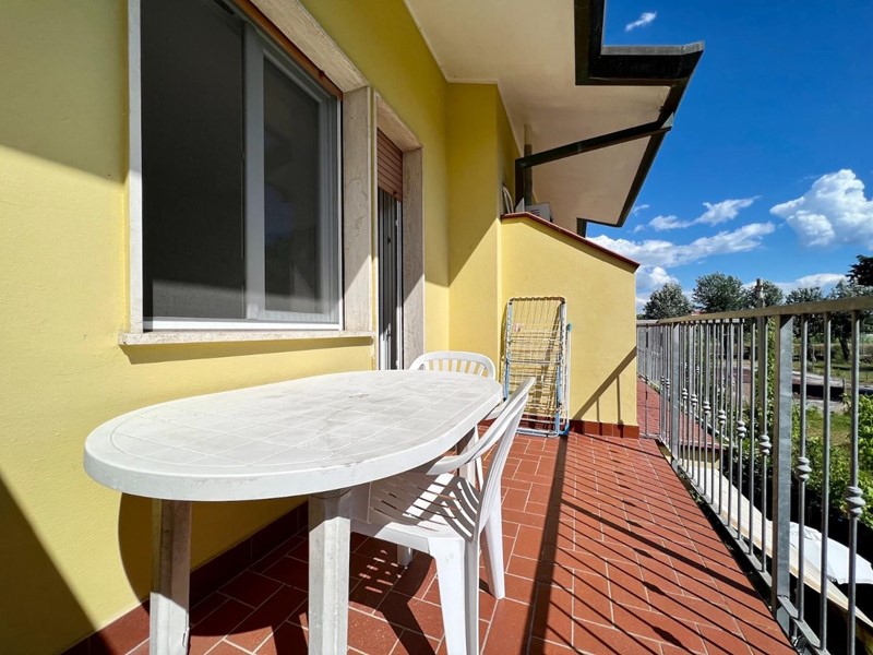 Marina di Massa, a circa 300 metri dal mare, in posizione comoda ai servizi, si affitta per brevi periodi e/o turistici, appartamento ristrutturato di recente, posto al piano primo e ultimo in piccolo condominio senza ascensore e composto da; ingresso, cucina, salotto con divano letto e comodo terrazzo per mangiare all'esterno, grande camera da letto con ulteriore letto singolo pieghevole, ripostiglio, bagno con doccia e aspiratore e box auto nel vano interrato condominiale.