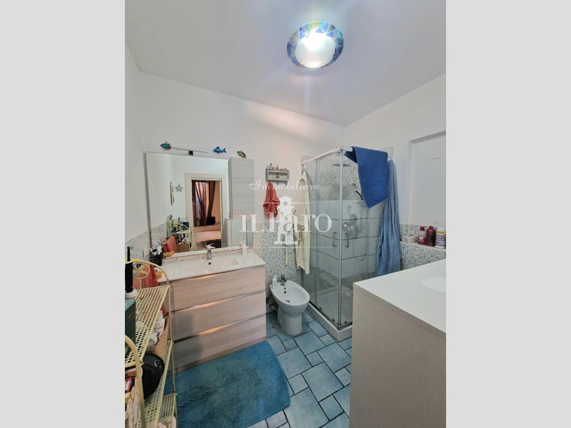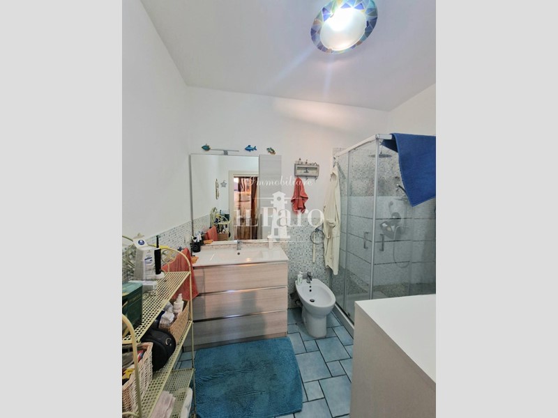 La proprietà è così composta: L'ingresso avviene dal GIARDINO ESCLUSIVO collegato al soggiorno con angolo cottura, proseguendo tramite il disimpegno raggiungiamo un'ampia camera matrimoniale, una camera singola, un comodo armadio a muro ad uso ripostiglio e due bagni con doccia non finestrati ma muniti di aspirazione forzata.