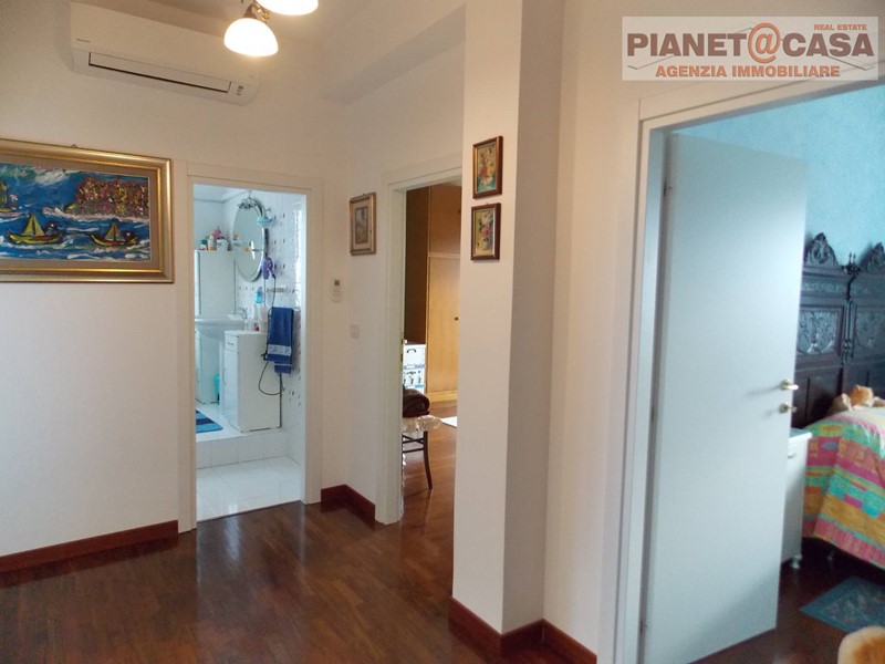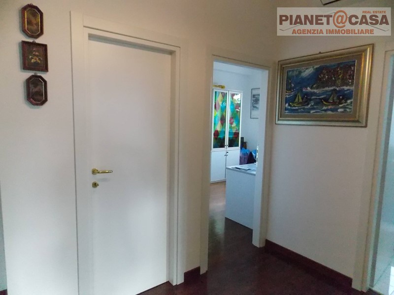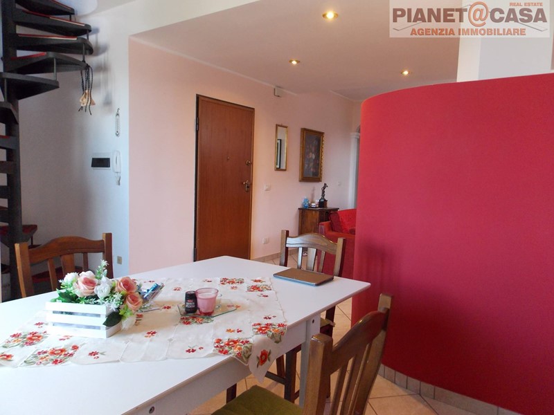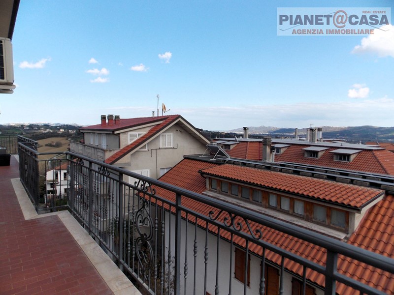L' immobile, sviluppato su due livelli, è posto al terzo piano senza ascensore ed è composto da ingresso su ampio soggiorno con camino e sala da pranzo, cucina abitabile, disimpegno, tre camere da letto di cui due matrimoniali ed una doppia, due bagni di cui uno con vasca ed uno con box doccia, ripostiglio, oltre ad un ampio balcone su tre lati con vista panoramica ed ottima esposizione Est-Sud-Ovest.