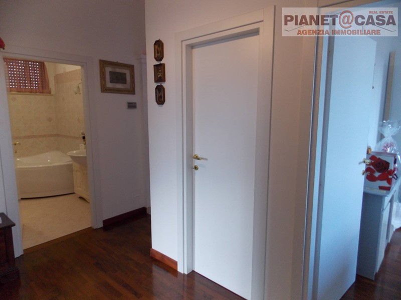 L' appartamento, in ottimo stato di manutenzione, è stato realizzato con materiali di pregio come Parquet nella zona notte, Gres porcellanato nella zona giorno, ed è dotato inoltre di infissi con doppio vetro, n. 2 portoni blindati, tetto in legno a vista ed impianto d'aria condizionata.