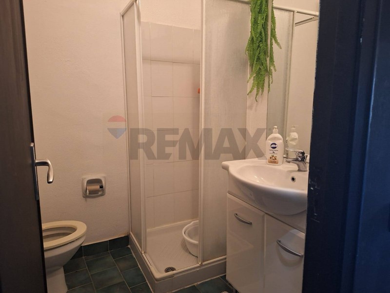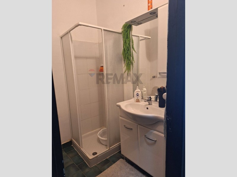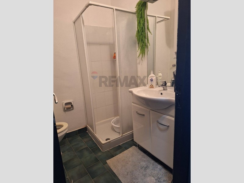 Il bagno, dotato di box doccia, ed è in buone condizioni.