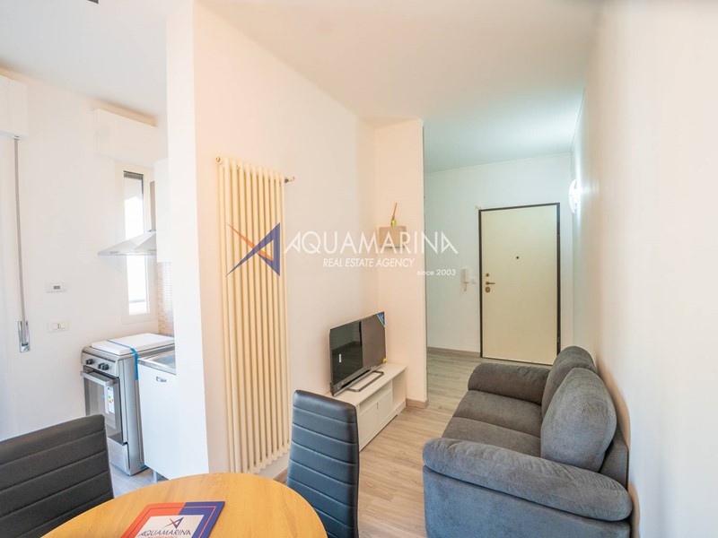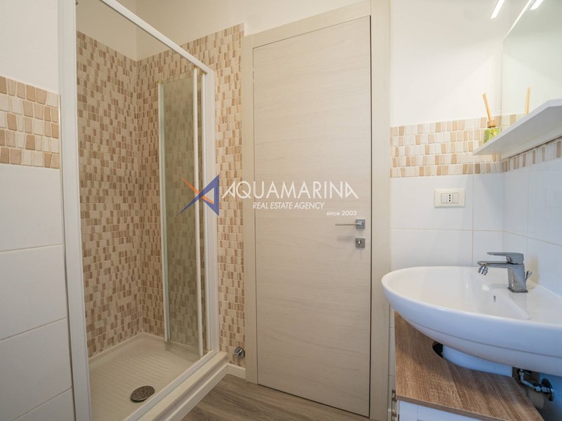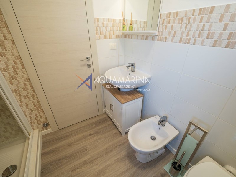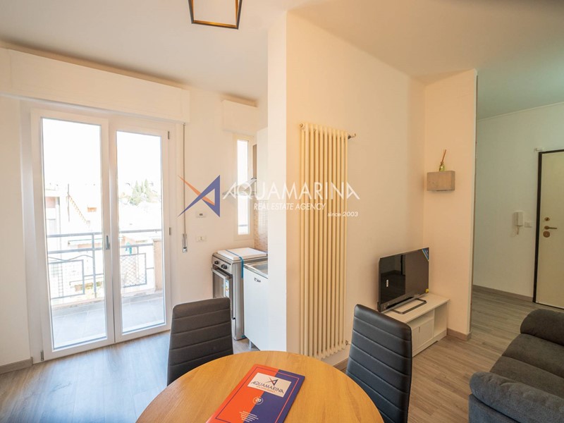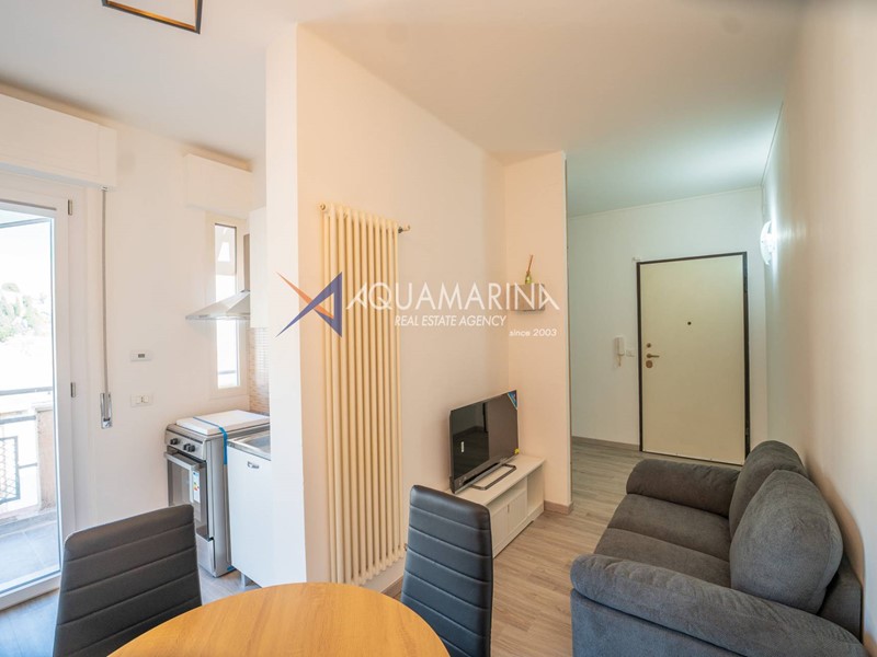Lappartamento è composto da ingresso con porta blindata, ampia camera da letto, bagno finestrato e soggiorno con angolo cottura a vista, con accesso al balcone vista mare. Dispone di riscaldamento autonomo, aria condizionata di nuova generazione e caldaia a gas di ultima generazione.