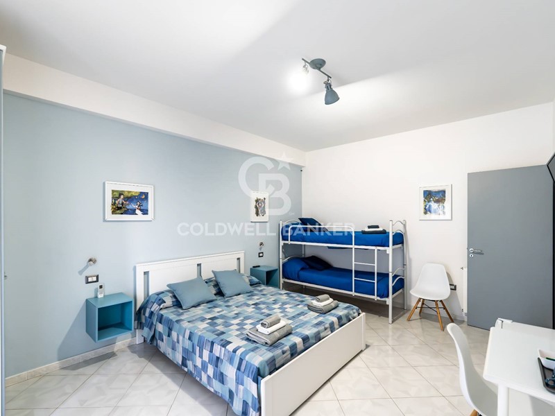 L'immobile è stato recentemente ristrutturato per essere adibito a struttura ricettiva, con ottima redditività dimostrabile, molto ben avviata con un portafoglio clienti fidelizzato, curata in ogni dettaglio, accogliente, comoda e funzionale, e si presenta con salone doppio all' ingresso con affaccio su un lungo balcone terrazzato, ottimo per dei momenti conviviali in totale relax, tramite il corridoio si accede a ben tre camere da letto ognuna con bagno riservato, una cucina molto spaziosa che si affaccia su un secondo balcone interno abbastanza largo che permette di avere ulteriore comodità. Si trova al piano rialzato mentre il garage di 32 mq è al piano sottostante, riparato dalle eventuali piogge e subito raggiungibile dalla scala condominiale.