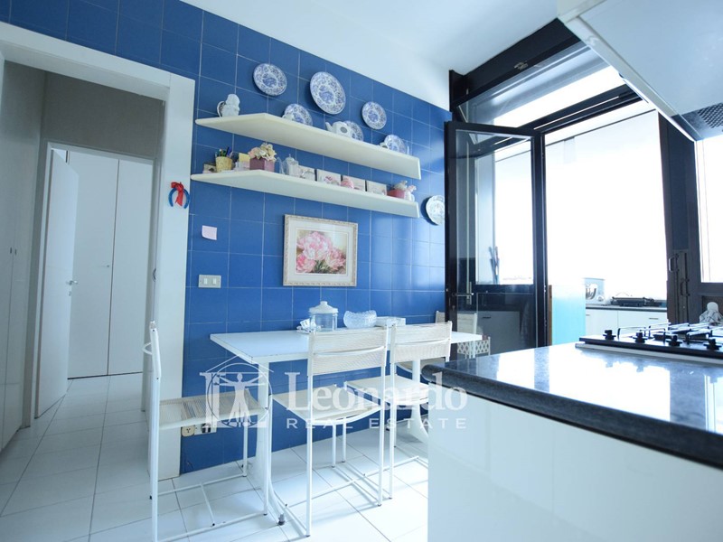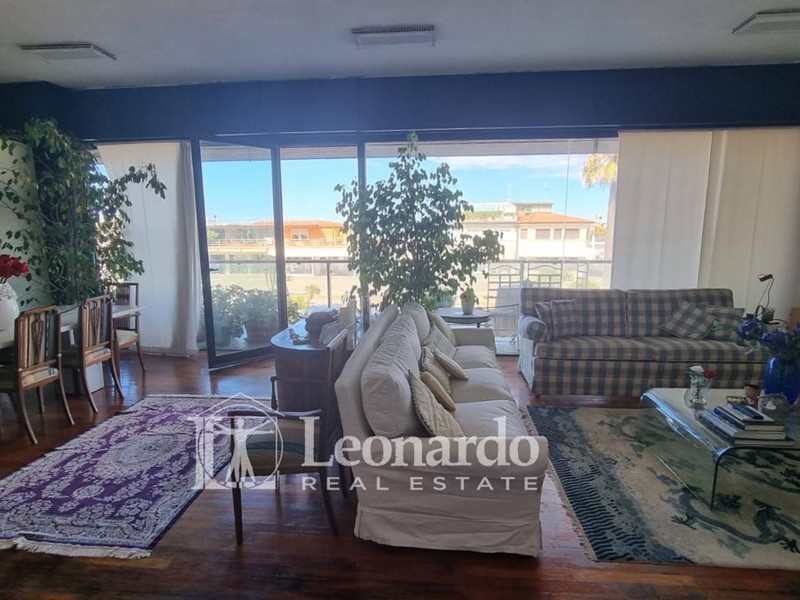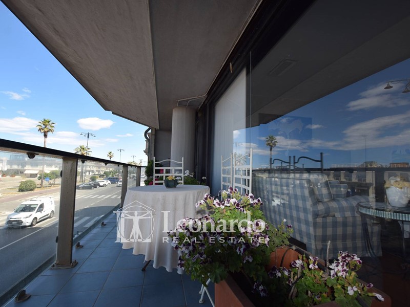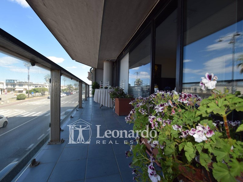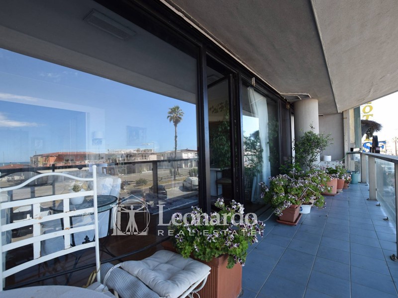 Accedendo all'appartamento subito si presenta ai nostri occhi la vera perla di questa proprietà e cioè un grande salone doppio tutto a vetrate affacciate verso mare, uno spazio di oltre 40 mq collegato all'ampio balcone terrazzato, che crea quindi uno spazio unico per vivere la casa a stretto contatto con il viale a mare e con il mare.