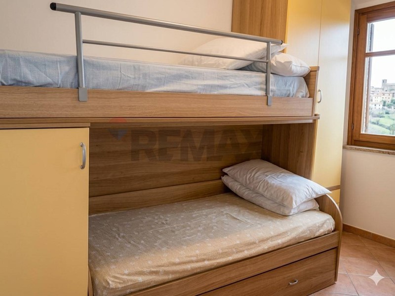 Lappartamento si trova al primo piano ed è ben distribuito: la zona giorno è organizzata in un open space accogliente e luminoso, mentre la zona notte offre due camere matrimoniali, spazi sempre più rari e molto apprezzati, oltre al bagno.