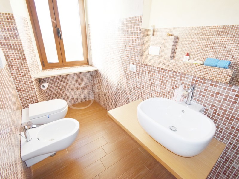 L'immobile di 139 mq catastali, conquista sin dall'ingresso: introduce sulla destra la zona giorno in cui troviamo una doppia sala luminosa che affaccia su Via Porto Romano. Di fronte alla sala, separata ma vicina, troviamo una cucina abitabile con angolo cottura completo di elettrodomestici e accesso ad un ampio ripostiglio finestrato in cui sono presenti la caldaia a pellet AKTIV per i caloriferi e caldaia Lamborghini per acqua sanitaria e fuochi. Questo ripostiglio ha la vista su Via San Giovanni. La zona notte è composta da una camera matrimoniale completa di cabina armadio, seconda camera spaziosa e ammobiliata e bagno finestrato completo di sanitari sospesi e box doccia.