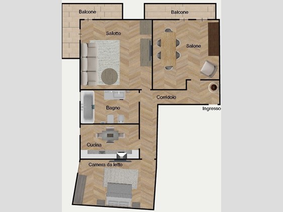 L'appartamento ha una distribuzione interna funzionale ed è composto da: