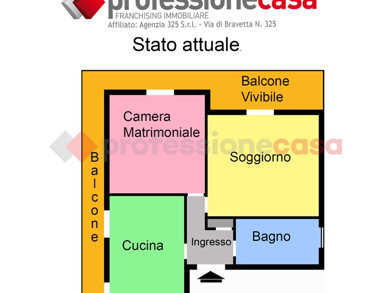 Appare immediatamente dotato di un ottimo potenziale avendo una pianta rettangolare si può suddividere con un minimo intervento ricavando un'ulteriore camera, inoltre può contare su un privilegio non trascurabile che è quello di avere una triplice esposizione che consente di beneficiare della luce solare per tutto l'arco della giornata.