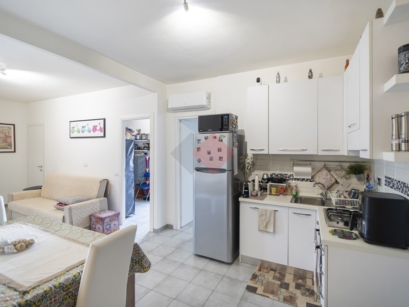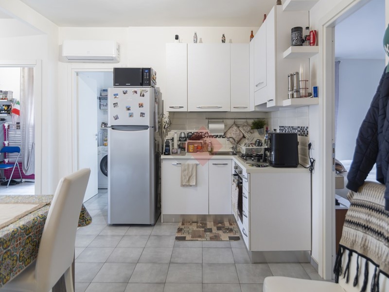 L'immobile verrà consegnato con il solo angolo cottura arredato, completo di lavastoviglie, frigorifero con congelatore, un tavolo allungabile con 4 sedie coordinate, piano cottura a gas a 4 fuochi con cappa di aspirazione e forno elettrico. La lavatrice è in bagno.