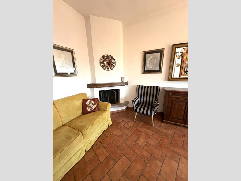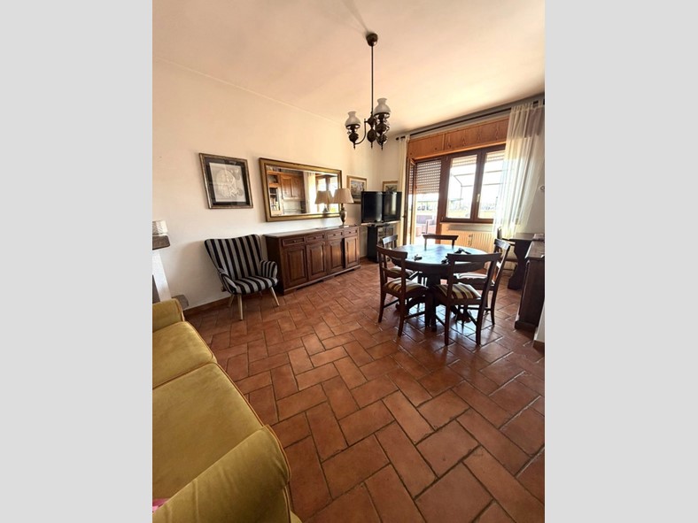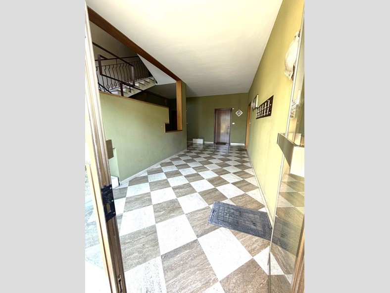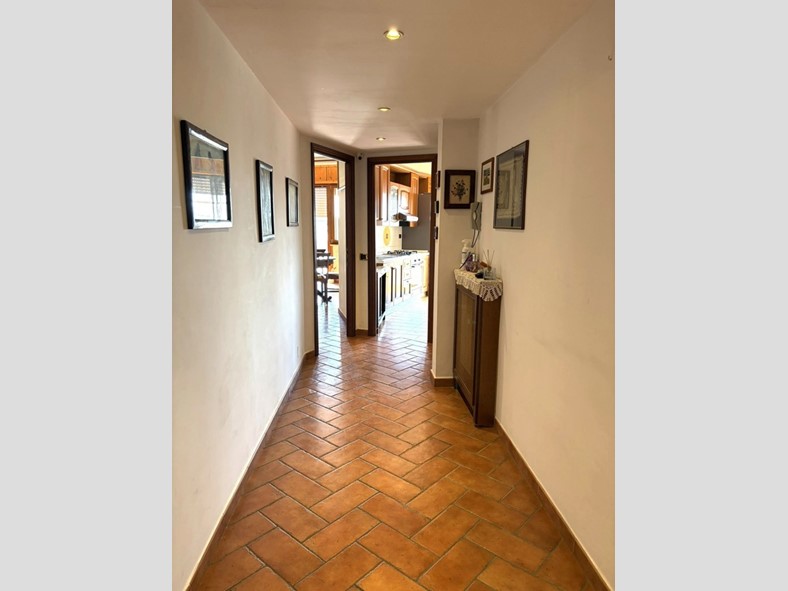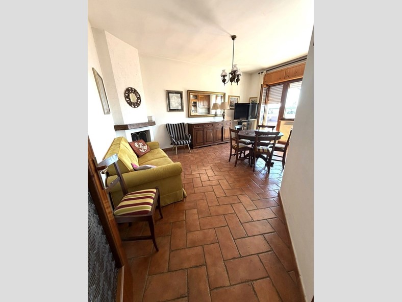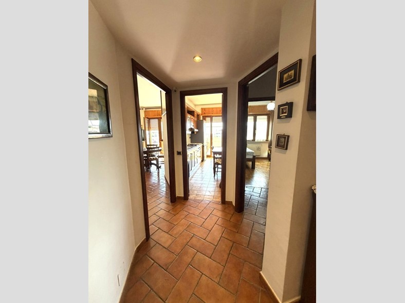 L'appartamento accoglie con un ampio ingresso, un salone luminoso con camino, una cucina abitabile, spaziosa e funzionale. La zona notte offre due camere da letto matrimoniali e un bagno confortevole con finestra.
