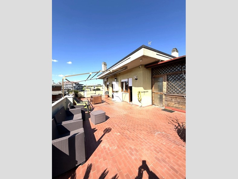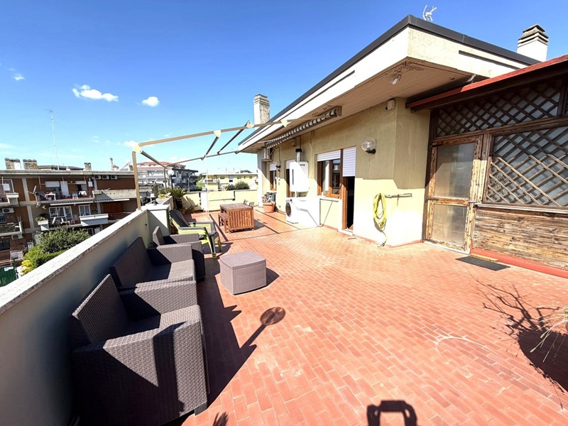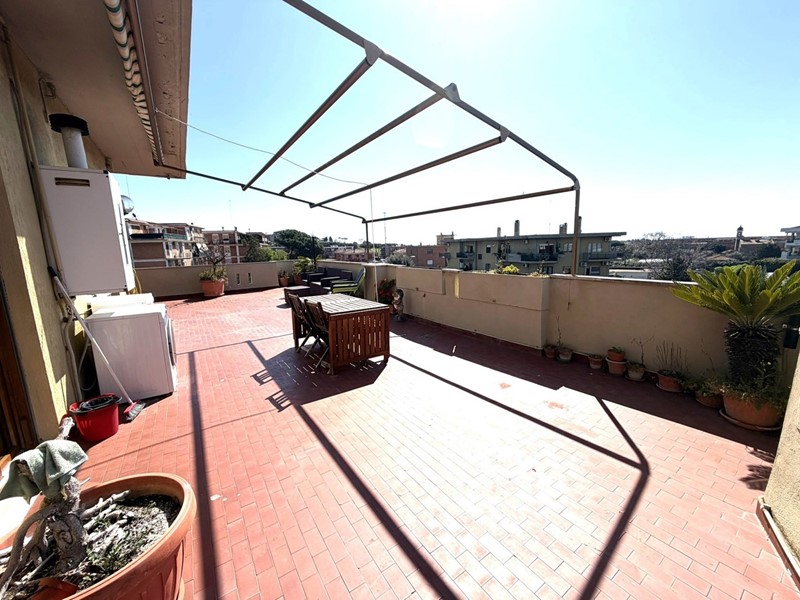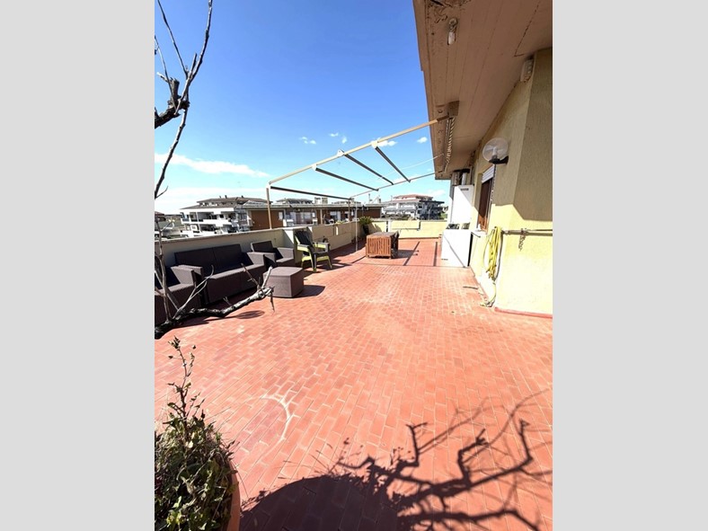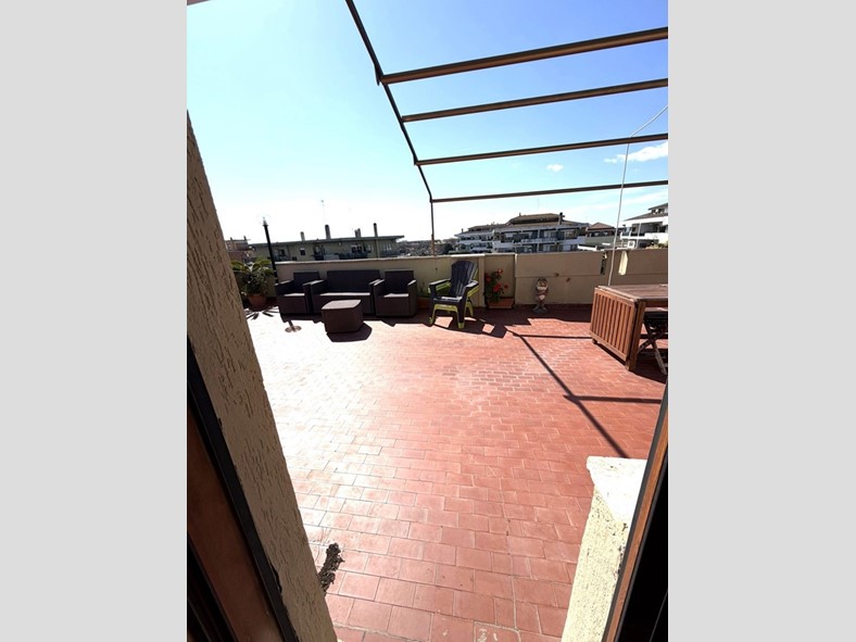 Vivere all'ultimo piano significa non avere nessuno sopra la testa. La metratura generosa del terrazzo permette di creare una vera e propria estensione della casa all'aperto, un lusso raro a pochi passi dai servizi di Cerveteri.