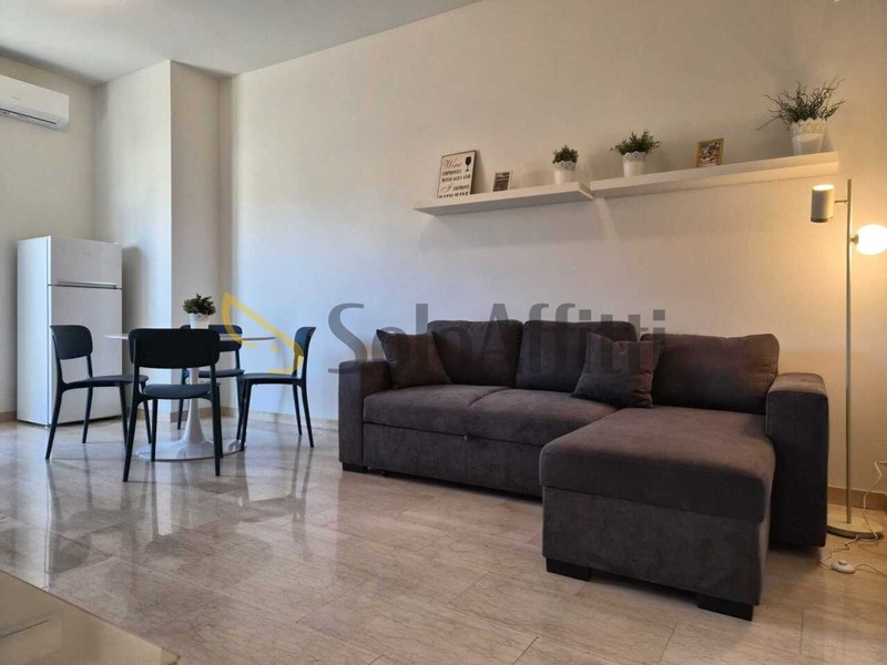 L’appartamento è composto da ingresso su zona giorno con cucina a vista, completamente attrezzata con elettrodomestici (lavastoviglie, forno, frigorifero, congelatore, piastra a induzione), terrazzo e disimpegno.