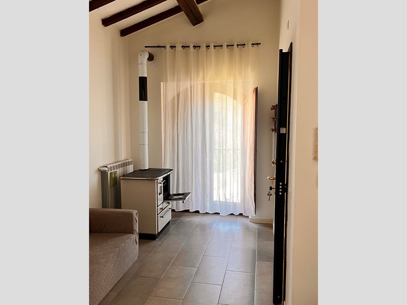 Al centro di Massa Martana, con bella visuale, appartamento con travi in legno a vista e soppalco ampio, composto da ingresso, salone con angolo cottura, anticamera, due camere da letto e due bagni, infissi in legno con doppi vetri.