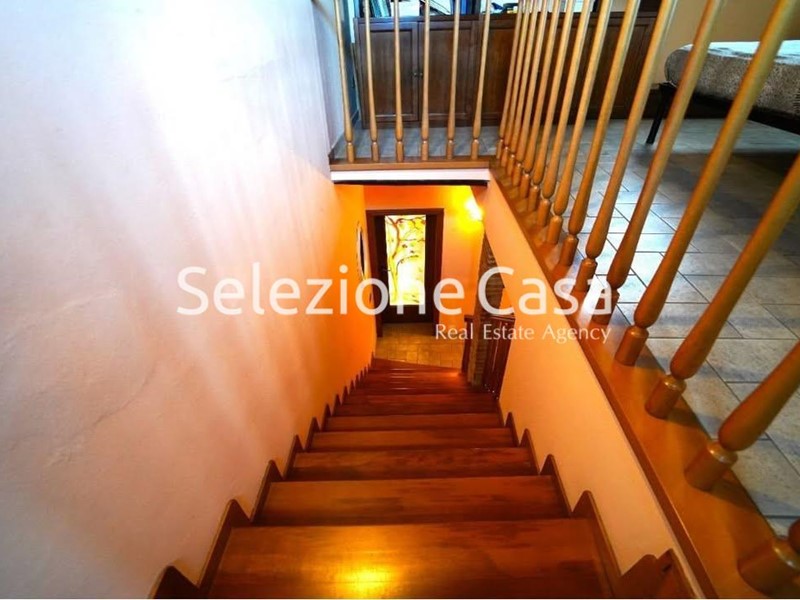 Gli spazi si sviluppano su più livelli e comprendono dieci locali, tre bagni e una resede privata utilizzabile come parcheggio per due auto.
