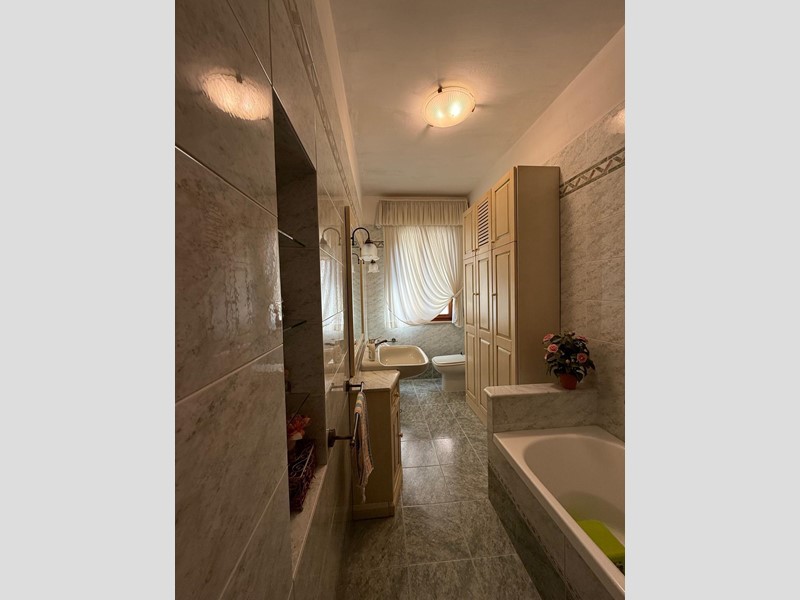 La zona notte, ben separata, è composta da tre camere matrimoniali, di cui due con balcone, oltre a un ulteriore bagno finestrato. Un valore aggiunto dell’immobile è rappresentato dal collegamento interno tramite scala alla zona di servizio, dove si trovano un ampio locale pluriuso, due pratici ripostigli, un bagno e una spaziosa taverna con accesso diretto al giardino esclusivo di circa 150 mq, perfetto per vivere momenti all’aperto in totale privacy.