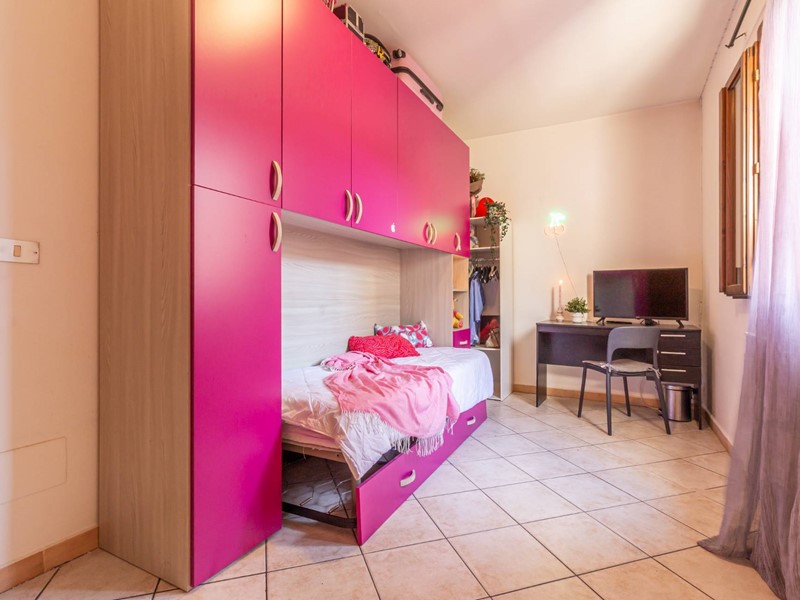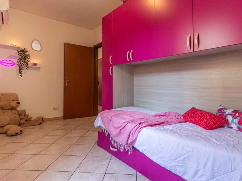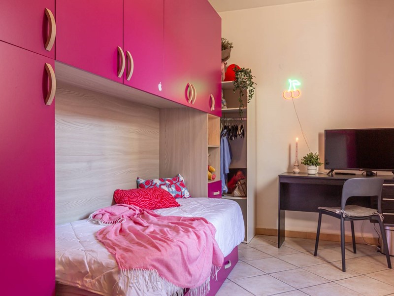 Un disimpegno separa la zona notte, composta da una camera matrimoniale, una seconda camera e un bagno finestrato. Gli ambienti risultano equilibrati nelle dimensioni e adatti sia a una giovane coppia sia a un piccolo nucleo familiare di due o tre persone.