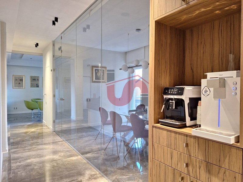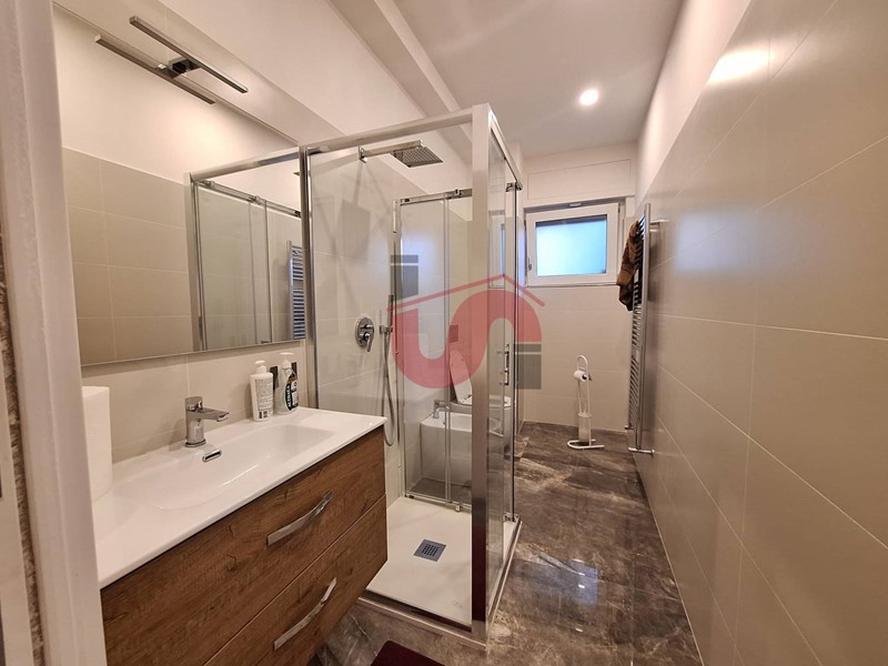 L'appartamento è stato recentemente ristrutturato e presenta finiture di pregio quali infissi in alluminio vetrocamera ad alte prestazioni, impianto di illuminazione a risparmio energetico, sistema di riscaldamento e raffrescamento con pompa di calore a mezzo termoconvettori regolabile da ciascuna stanza, videocitofono azionabile da ciascuna postazione, impianto d'allarme e videosorveglianza.