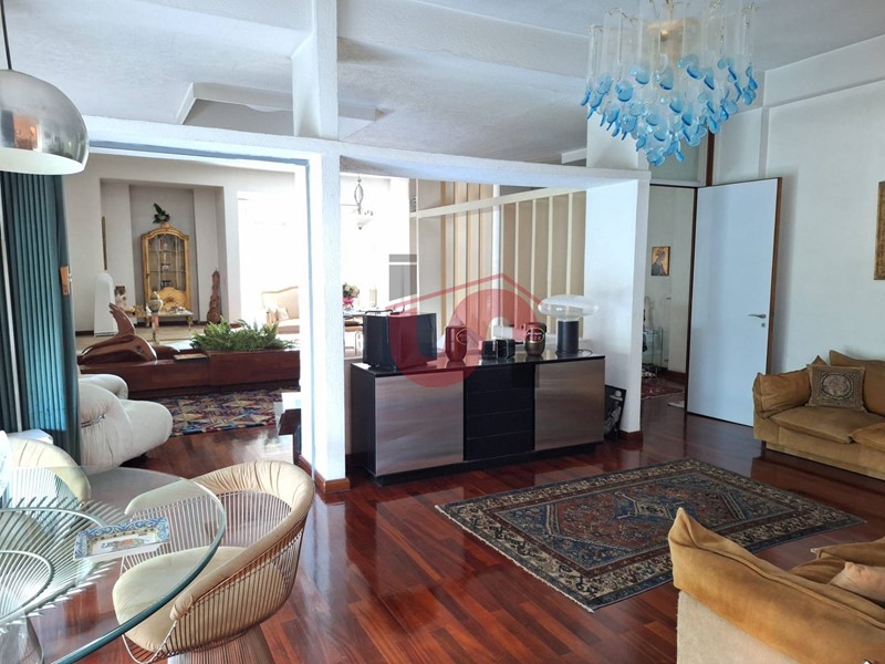 Gli spazi, generosi e ariosi, sono disposti su 13 vani che si prestano ad essere interpretati in maniera funzionale alle proprie esigenze consentendo modifiche e nuove concezioni dell'attuale scenario caratterizzato da un piacevole gusto tipico dell'architettura anni '80, dove la zona living assolve alla funzione di raccordo tra i diversi ambienti. L'attuale distribuzione, infatti, presenta un sontuoso salone con isola rialzata che funge da elemento di risalto per l'accoglienza degli ospiti, un soggiorno, una cucina abitabile, quattro camere da letto di cui la padronale fornita di cabina armadio e ampia sala da bagno, ulteriori due servizi, uno studio, un vano spogliatoio e un ripostiglio, il tutto arricchito di elementi di decoro che conferiscono signorilità all'immobile.
