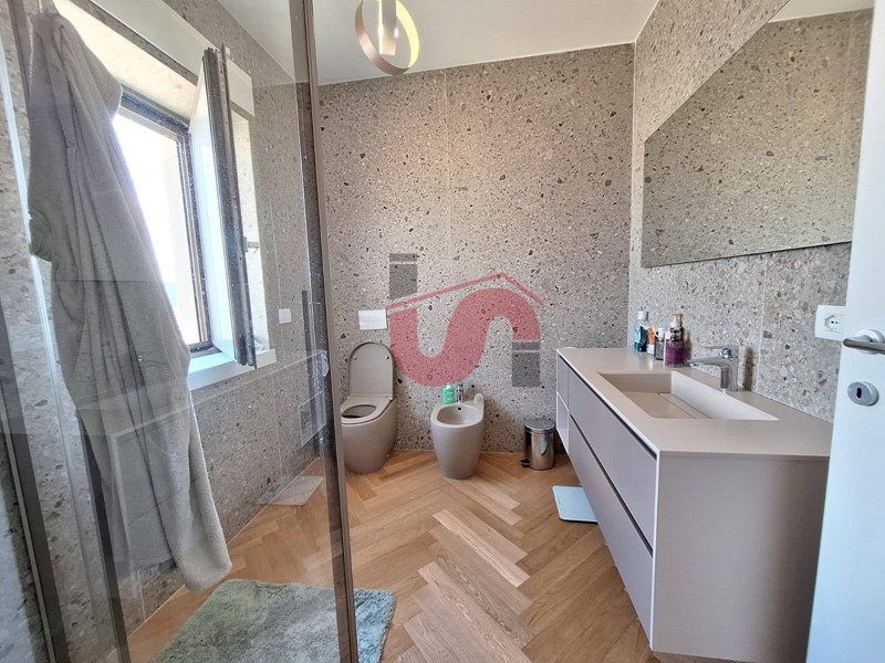 L'immobile viene consegnato con infissi in Alluminio vetrocamera di ultima generazione, sistema di condizionamento ad aria caldo/freddo incassato in controssoffitto con pompa di calore ad alta efficienza, Videocitofono, tapparelle elettriche, allarme, PARQUET spina ungherese, porta blindata, LED, igienici colorati marca cielo, rivestimenti bagno da 280 cm in cherlite, IMPIANTI A NORMA.