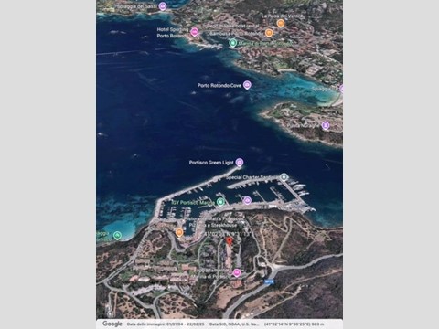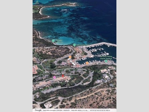 La proprietà si trova a pochi passi dalla Marina di Portisco, porto turistico ben attrezzato e gode di una splendida vista panoramica sul mare, che spazia dalle isole di Soffi e Mortorio a nord/est, fino a Capo Figari e Tavolara a sud/est.