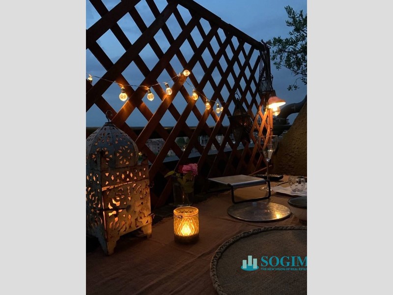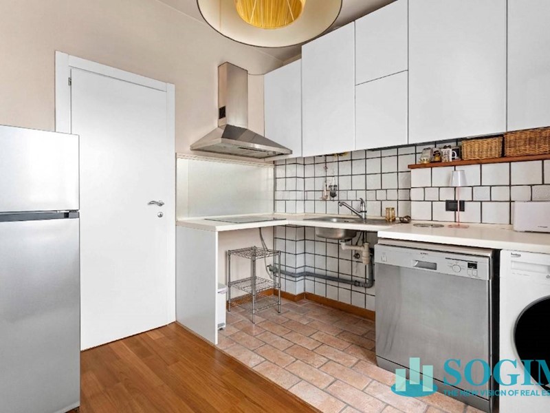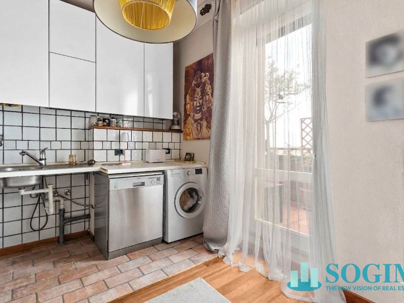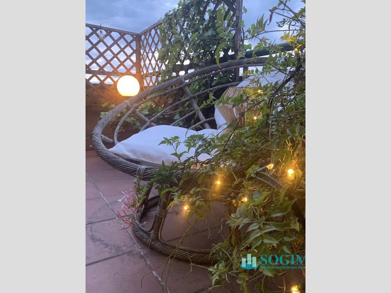 Il vero protagonista è il terrazzo che avvolge lappartamento, uno spazio prezioso dove godere di luce naturale durante tutto il giorno, ideale per pranzi e cene allaperto, momenti di tranquillità o per creare un angolo verde personale.
