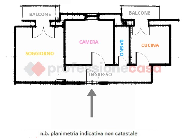 L'immobile è composto da un comodo salone con accesso diretto ad un balcone, una camera da letto, cucina con balcone e un bagno.