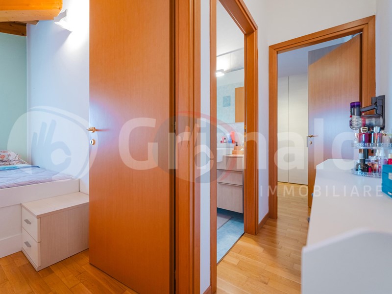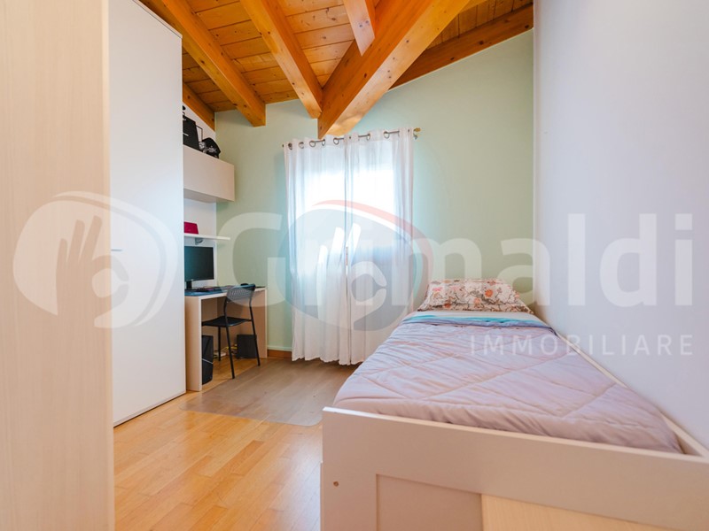 Salendo le scale al piano secondo, sono presenti due camere da letto a scalare (matrimoniale e singola), un bagno finestrato e poggiolo.