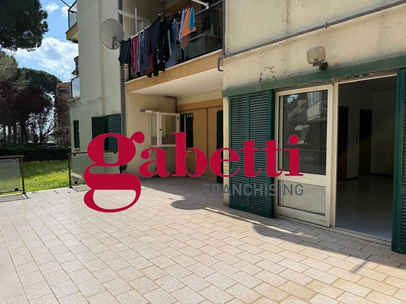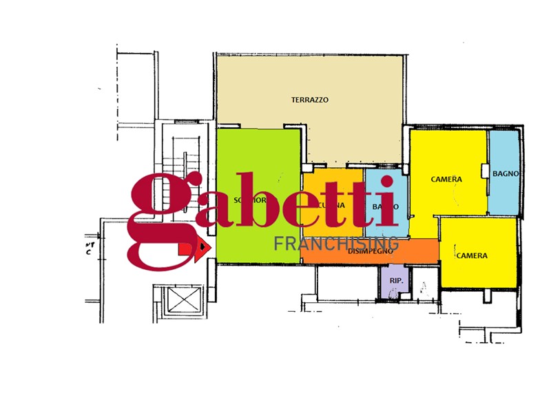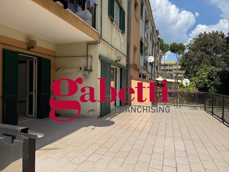 L'immobile, con una metratura interna di circa 96 mq., risulta così composto: soggiorno, cucina, entrambi con affaccio sull'enorme terrazzo attrezzabile, disimpegno, due camere da letto, ripostiglio e doppi servizi.