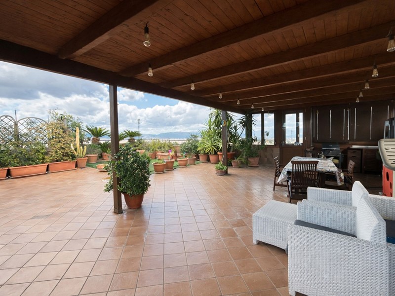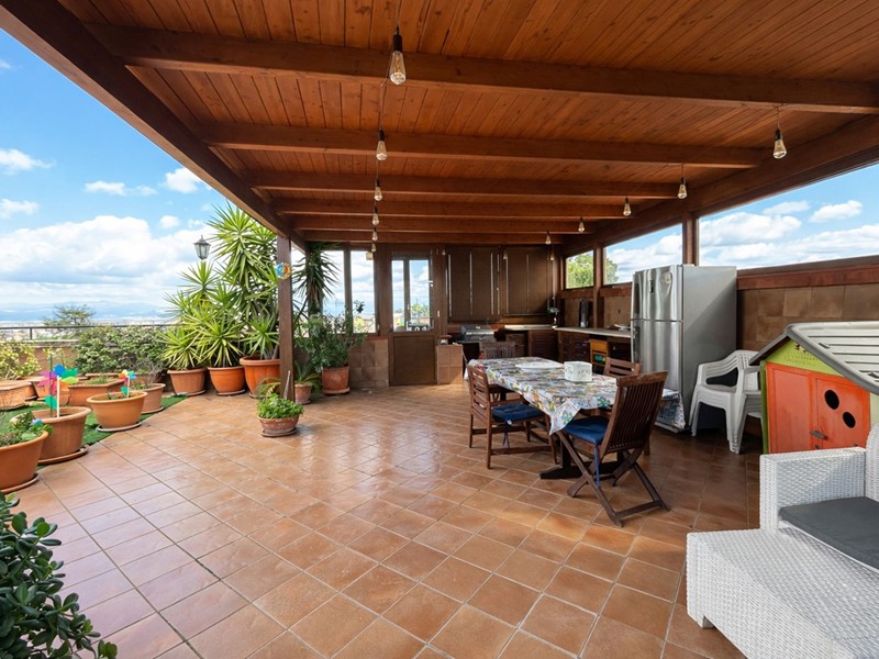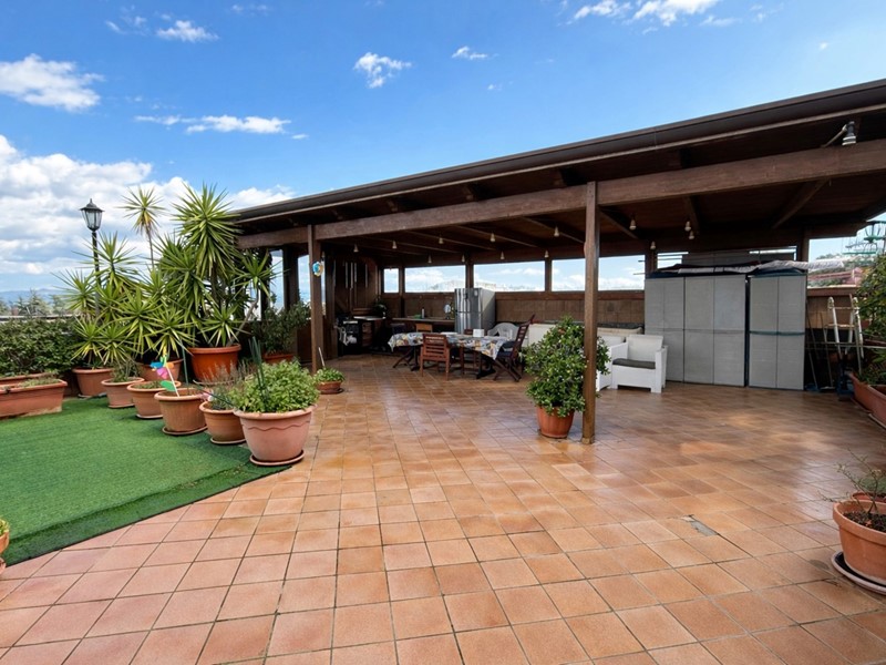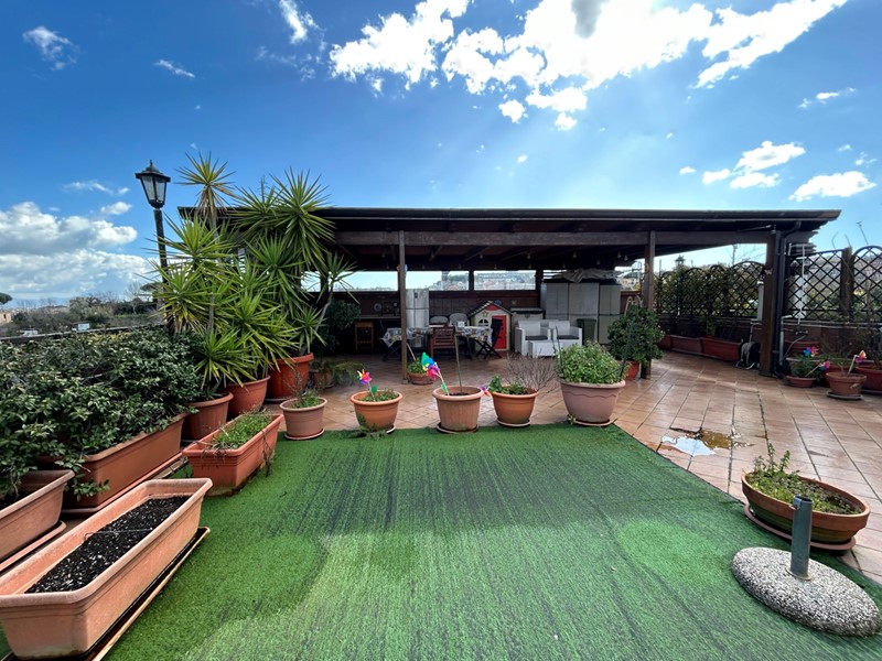 Il vero elemento distintivo è il terrazzo di copertura di circa 110 mq, situato al piano superiore e collegato direttamente dal balcone verandato della cucina tramite scala privata. Uno spazio in parte coperto da struttura in legno. Uno spazio ampio e panoramico, ideale per creare zona relax, area conviviale o cucina esterna.