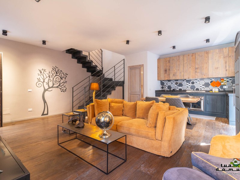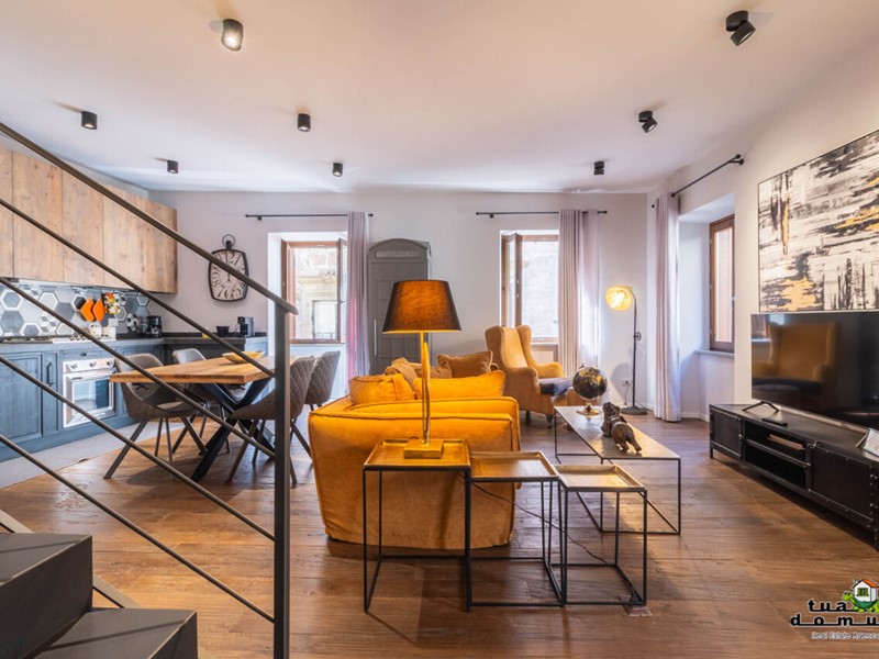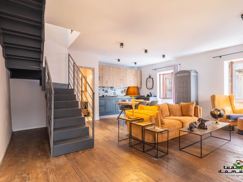 Nel cuore del centro storico di Sutri, a pochi passi dalla piazza principale del paese, proponiamo in vendita un appartamento completamente ristrutturato e arredato con cura, situato al piano primo e secondo, di una palazzina d’epoca. L’immobile si sviluppa su due livelli. Al primo piano troviamo un ampio salone con cucina a vista, un ambiente accogliente, elegante e ben distribuito, valorizzato da finiture di pregio e dettagli ricercati, oltre ad un bagno all’interno del quale è stata ricavata una comoda zona lavanderia. Il secondo piano è dedicato alla zona notte ed è composto da due camere matrimoniali, entrambe dotate di bagno privato con box doccia, oltre ad una soffitta accessibile tramite botola, ideale come spazio di deposito. La recente ristrutturazione è stata eseguita con grande attenzione ai materiali e allo stile, con interventi importanti come il rifacimento del tetto con coibentazione e il restauro completo della facciata esterna, realizzato con recupero e valorizzazione dei materiali originari caratteristici, che regalano all’immobile ulteriore fascino e autenticità, per garantire comfort abitativo ed efficienza energetica. Gli ambienti sono impreziositi da pavimenti in parquet, soffitti con travi a vista che conferiscono calore e carattere, e bagni rifiniti con eleganti rivestimenti effetto hammam. Gli infissi in legno con doppi vetri contribuiscono a un perfetto isolamento termico e acustico, mantenendo al contempo il fascino autentico del contesto storico. Completano la proprietà riscaldamento autonomo a pavimento, impianto di aria condizionata con split installati nel rispetto delle normative previste per i centri storici, e porta blindata, elementi che assicurano comfort, sicurezza e qualità abitativa. Nel prezzo di vendita è inclusa una cucina di valore, perfettamente integrata negli spazi dell’abitazione. La proprietà valuta inoltre la possibilità di cedere, con trattativa separata, gli arredi attualmente presenti, offrendo così una soluzione pronta all’uso. Grazie alla posizione nel borgo storico e alla distribuzione interna degli spazi, la proprietà rappresenta una soluzione ideale sia come abitazione principale, sia come casa vacanze o investimento per locazioni turistiche. Il presente annuncio non costituisce elemento contrattuale. Le informazioni riportate sono solo a titolo esemplificativo.