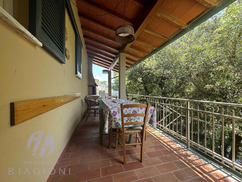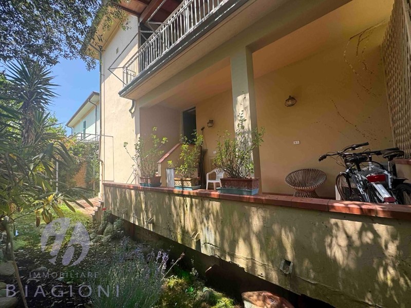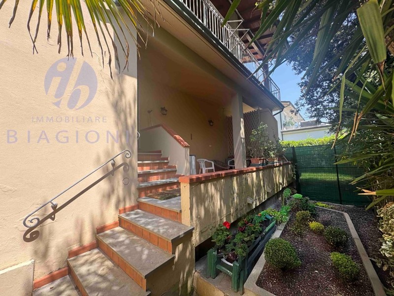 L'immobile si compone di cancello d'entrata a piano terra su proprietà esclusiva, è possibile ampliare l'entrata e consentire l'ingresso alle vetture. Sul retro abbiamo un giardinetto intimo ed ombroso iottimo per l'estate sul quale si affacciano sia la terrazza del PT di proprietà esclusiva che quella del P1 (idem). Da scala di proprietà si accede al piano primo che occupa tutto il piano ed è appunto servito da terrazza al piano e balcone frontale, dal disimpegno si accede alla luminosissima zona giorno,