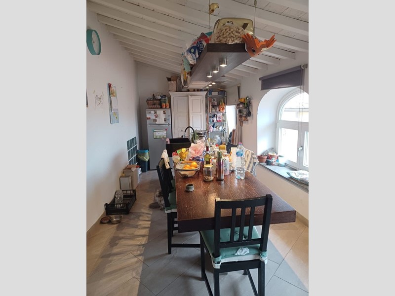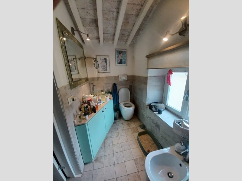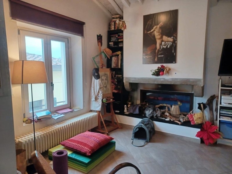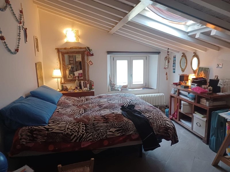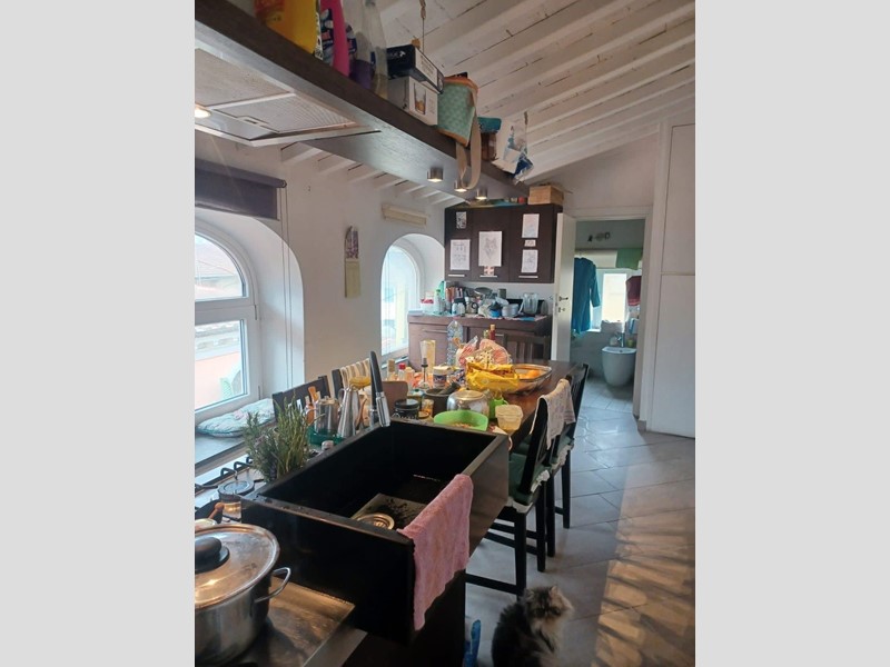 L’ingresso introduce a un ampio soggiorno dove il camino, protagonista indiscusso, conferisce calore e carattere all’intera zona giorno. La cucina, abitabile e ariosa, si apre generosamente verso l’esterno: le sue tre finestre incorniciano, lo scorcio suggestivo dei tetti del borgo, offrendo una prospettiva privilegiata e un’illuminazione naturale costante.