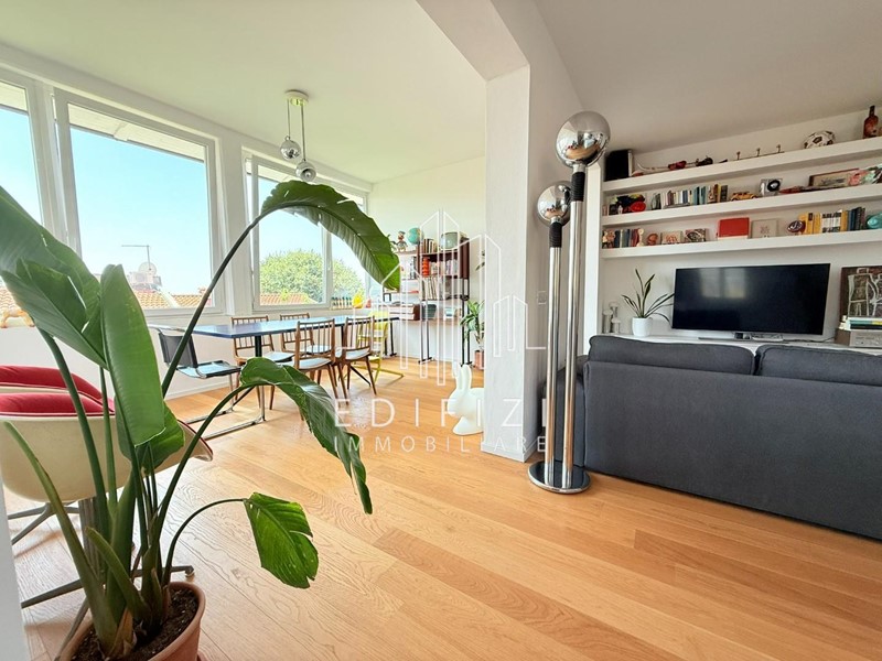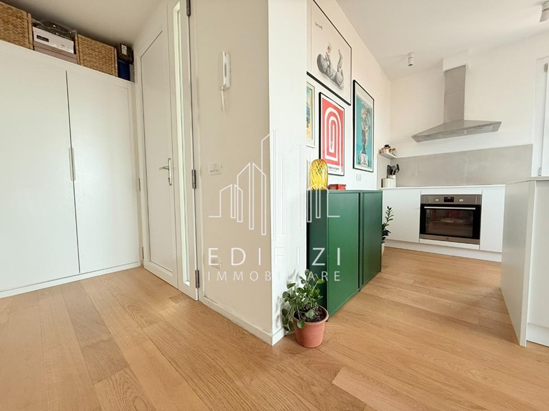 Ingresso con disimpegno, grande open space con cucina a vista e comodo soggiorno, zona pranzo dotata di grande vetrata con vista panoramica e splendido balcone compongono la zona giorno che è completata dal bagno di servizio completo.