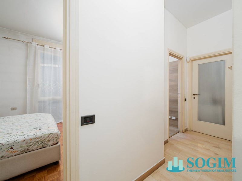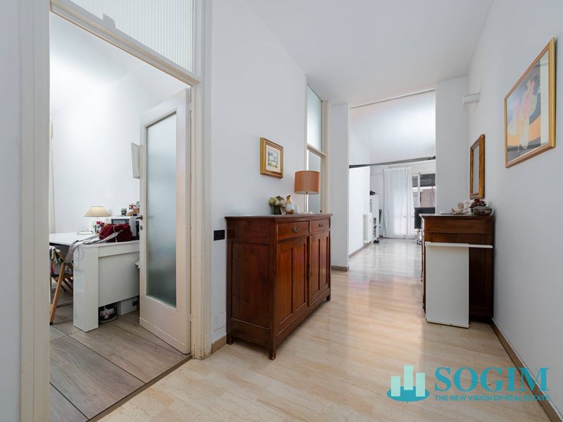 L'appartamento, libero su due lati, gode di un'esposizione a est beneficiando di un'ottima luminosità nelle ore mattutine ed è composto dall'ingresso che si apre sul corridoio il quale separa longitudinalmente l'area living dalla zona notte, conferendo privacy e riservatezza agli ambienti deputati al riposo .