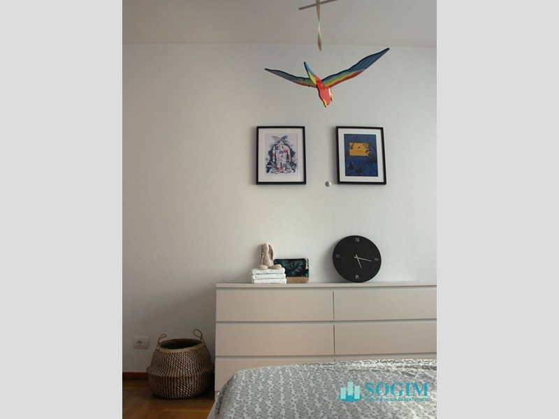 Attraversata la zona living, si accede alla zona notte che accoglie un'ampia camera matrimoniale e il bagno.