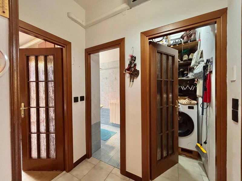 Completano la disposizione dei locali il bagno, finestrato e provvisto di box doccia ed un pratico locale ripostiglio/lavanderia.