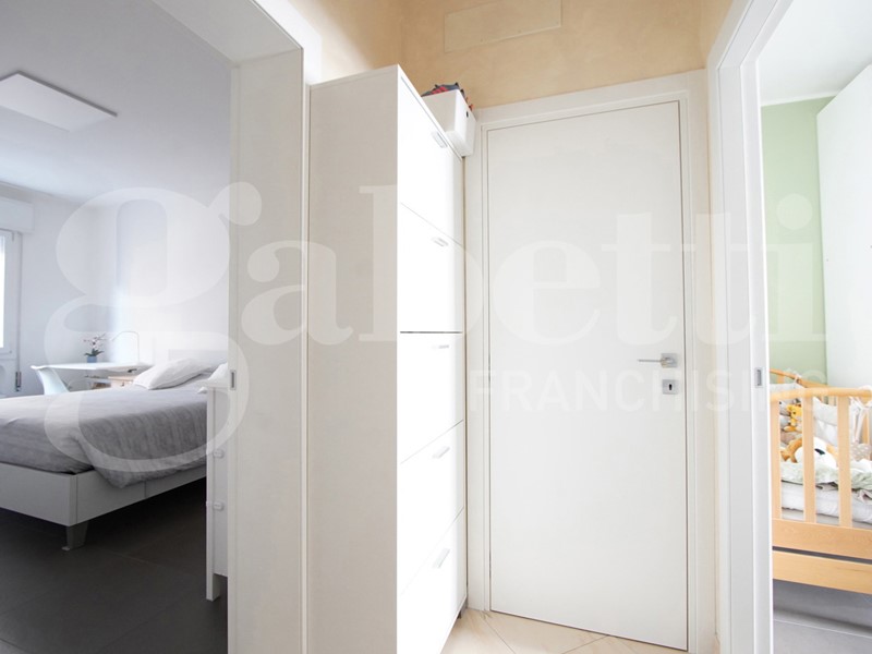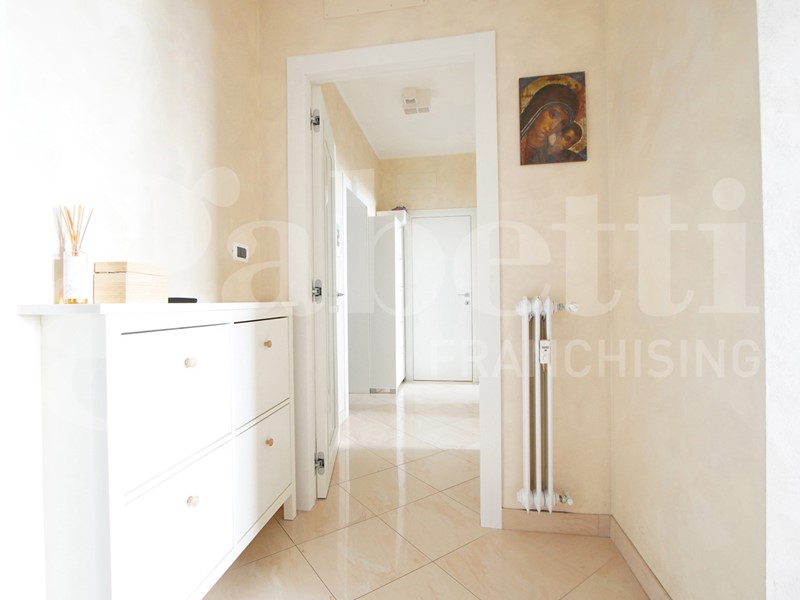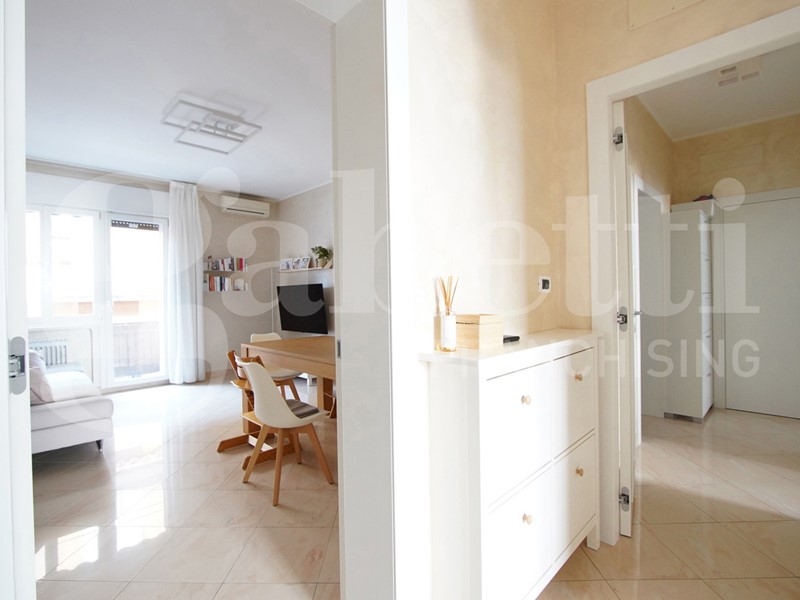 La casa situata al piano 2° si compone di ingresso, soggiorno con cucinotto, stanza multifunzione che può essere utilizzata come camera da letto, studio, sala giochi o salotto aggiuntivo, 2 ampie camere da letto, servizio, ripostiglio e terrazzo al quale si accede dalla zona giorno. Al piano superiore è presente una soffitta ed al piano terra un garage oltre alla possibilità di mettere una macchina nel cortile condominiale. Le finiture sono tutte di primissima scelta e pensate per una casa moderna e da vivere in ogni suo spazio al meglio. L'aria condizionata già presente consente di vivere la casa al meglio anche nel periodo estivo ed i serramenti in vetrocamera garantiscono in inverno un ottimo isolamento e durante tutto l'anno una buona insonorizzazione anche se il contesto è molto tranquillo.