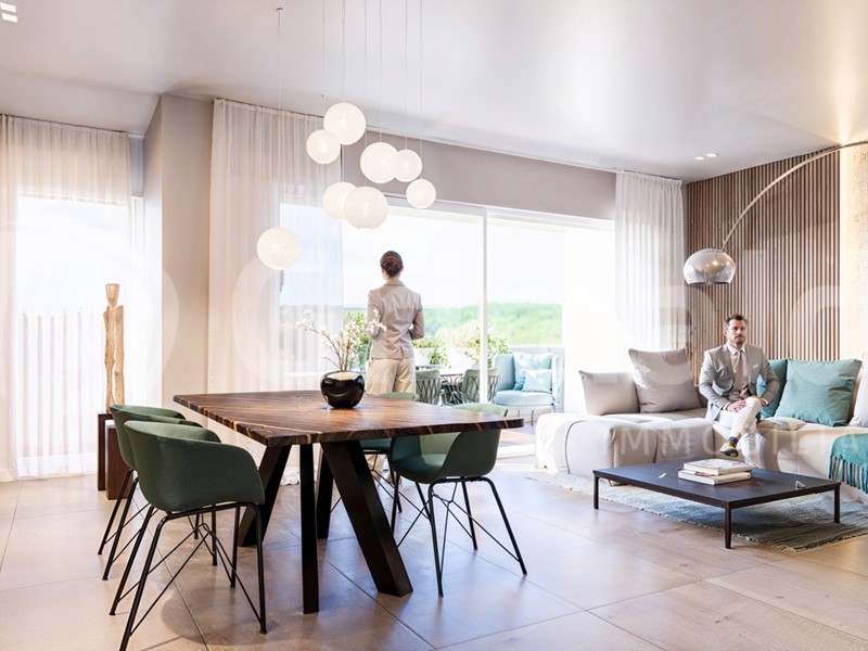 Sono disponibili appartamenti con tre camere da letto al piano terra con giardino, soluzioni al piano primo e al piano secondo con terrazze abitabili.