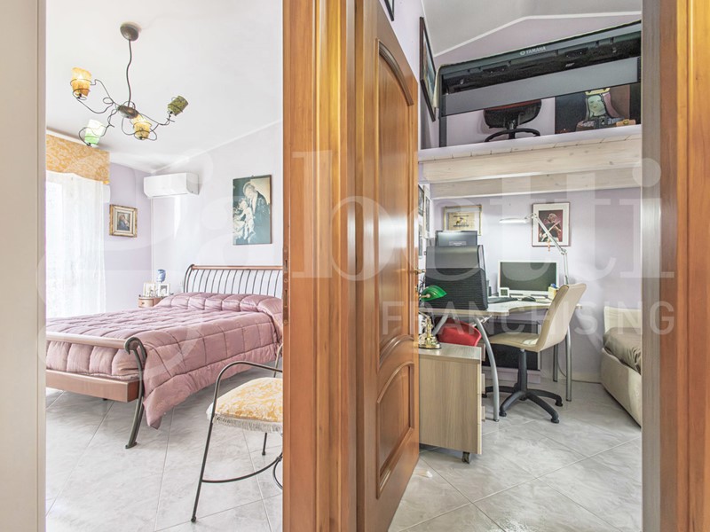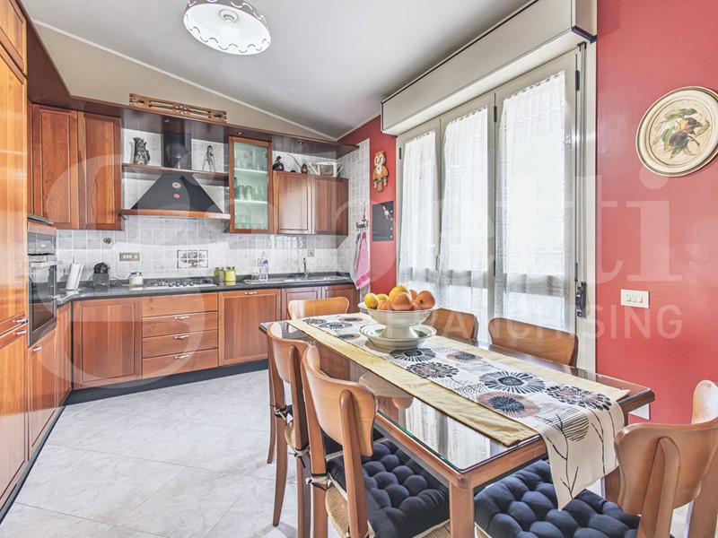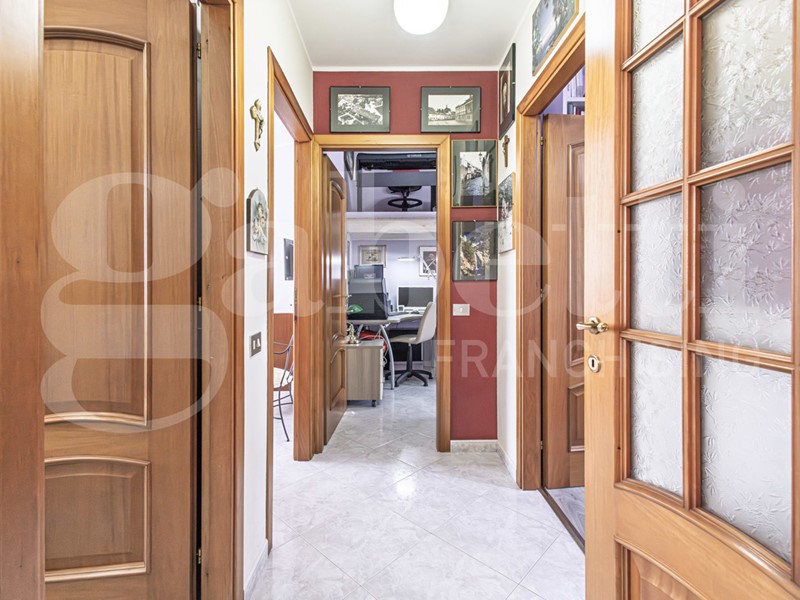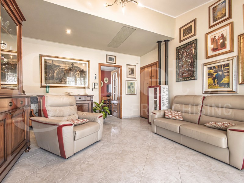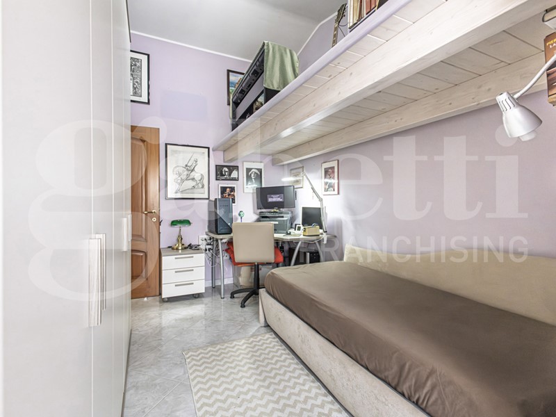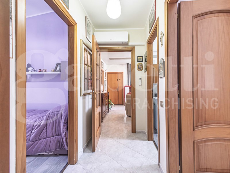 L'immobile è composto da soggiorno con accesso alla veranda frontale, cucina abitabile con accesso al balcone retrostante, disimpegno, bagno (completamente ristrutturato) con doccia, camera matrimoniale, due camera singole.