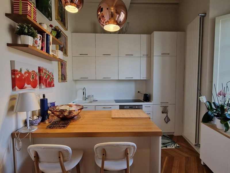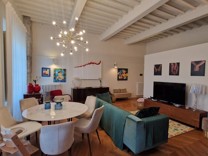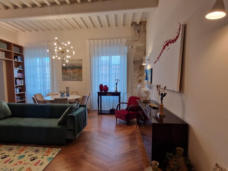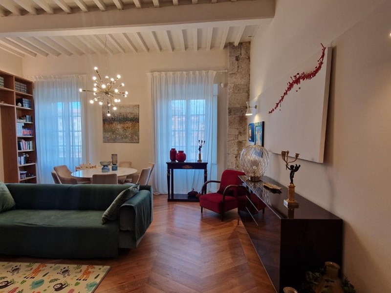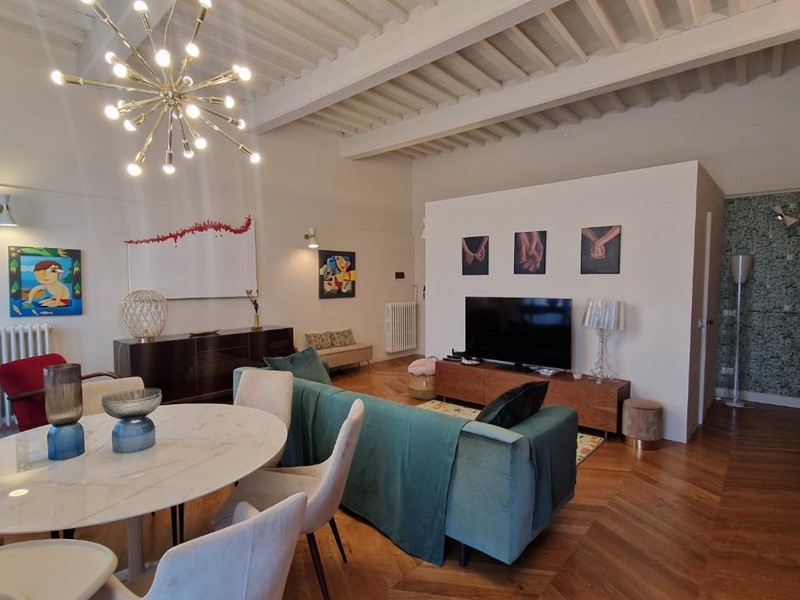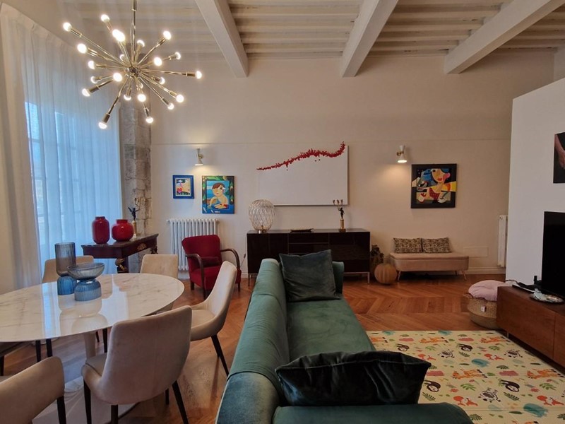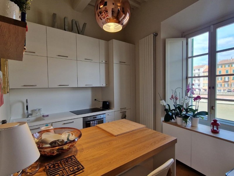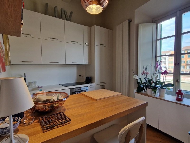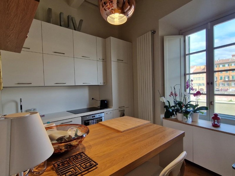 LUNGARNO CON AMPIO GARAGE - In bella palazzina antica, completamente recuperata in tutte le sue parti, grazioso appartamento ristrutturato con gusto e splendidi affacci sul fiume. L'immobile si trova al primo piano con ascensore e si compone da ingresso in ampia sala di circa 40 mq con soffitti alti, travi e mezzane, balcone con affaccio diretto sul fiume, cucina abitabile, disimpegno, due camere di cui la matrimoniale con bellissimi affreschi e doppi servizi, oltre a zona lavanderia, guardaroba e ripostiglio, completa la proprietà un ampio garage di circa 26 mq, posto all'interno dell'area condominiale, chiusa con cancello motorizzato. L'unità immobiliare, vicina a tutti i principali servizi è stata oggetto in una completa curata ristrutturazione e gode di ottime rifiniture, portone d'ingresso blindato, videocitofono, zanzariere in tutte le finestre e condizionatori. Questa soluzione è ideale per chi ama stare in centro, con una bellissima vista Arno ed avere la comodità di un grande garage.