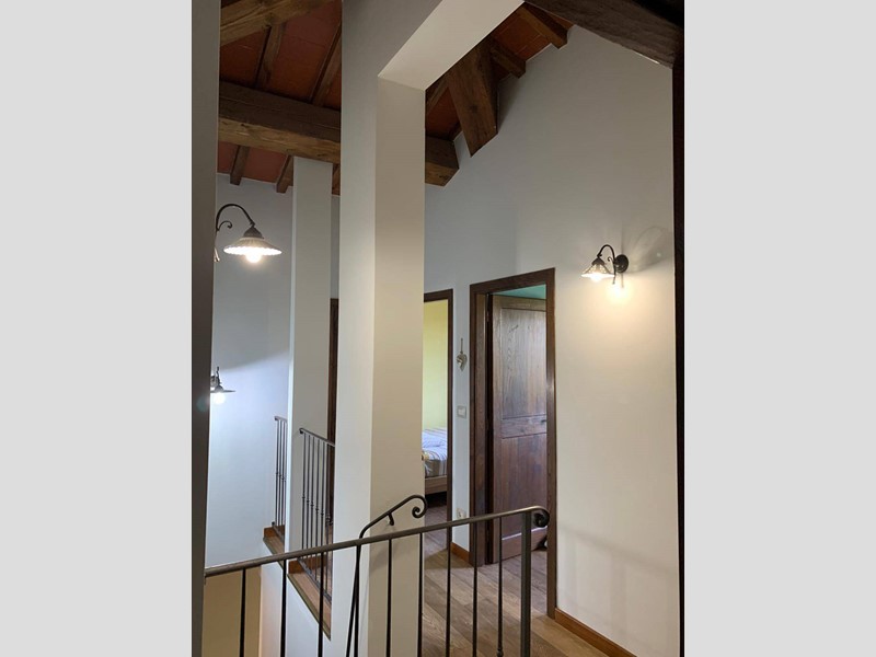 Labitazione, costruita nel 2004, si sviluppa su più livelli e offre ambienti ben distribuiti: quattro camere da letto, di cui una con il bagno ensuite, due bagni e una calda zona living arricchita da una suggestiva stufa a legna. Le finiture in castagno donano carattere e autenticità agli interni, mentre la cucina, recente e inclusa nella vendita, è pronta per essere vissuta.