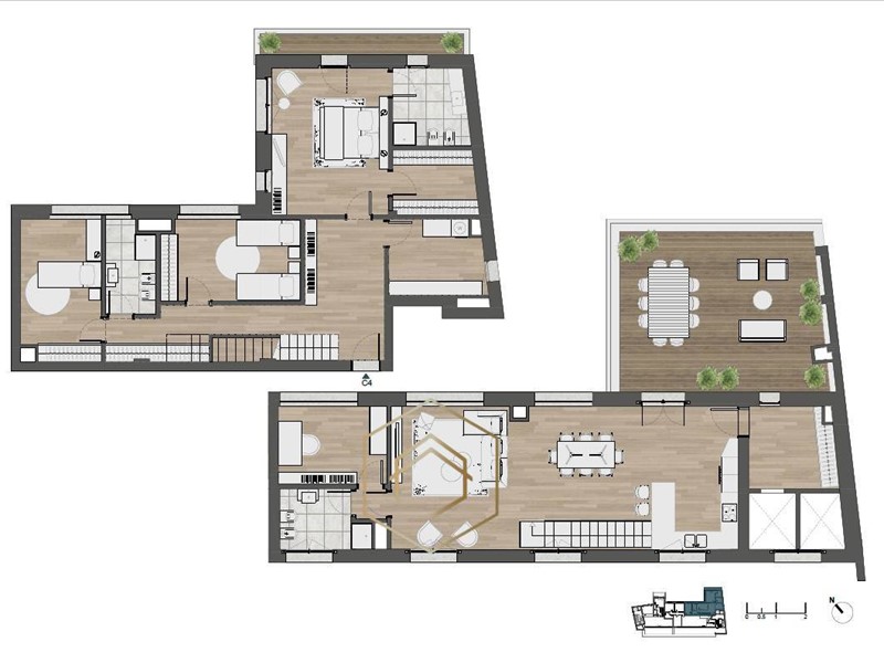 Due unità attico disponibili all'interno del Palazzo Etienne, le unità abitative si distinguono per la loro grande terrazza panoramica, che può essere adibita a zona relax.