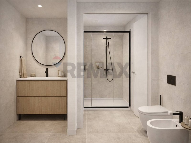 Bagno di Design: Un servizio moderno, rifinito con materiali di pregio e un box doccia dal taglio ricercato.