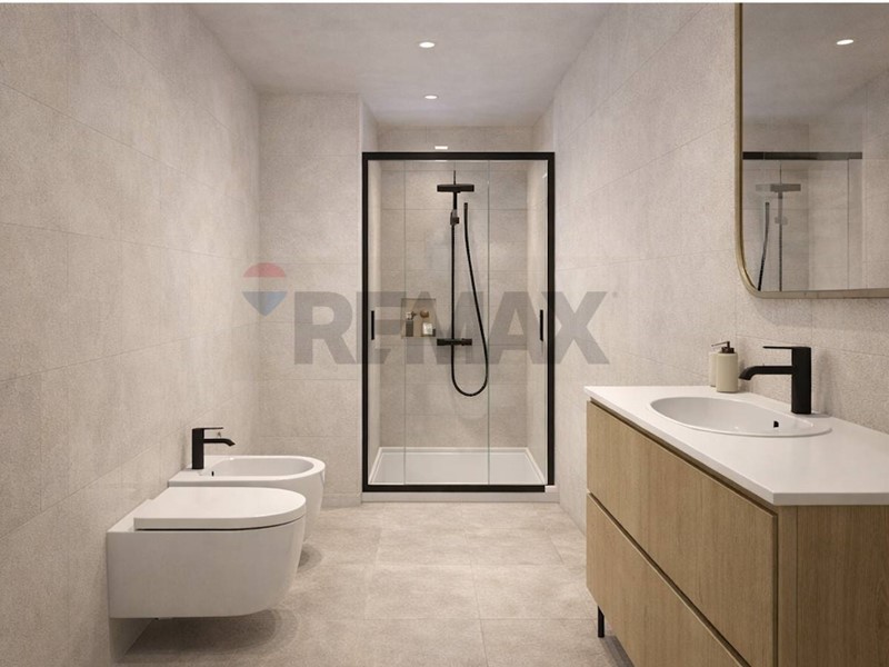 Bagno di Design: Rifinito con finiture di alta gamma e un ampio box doccia dal taglio contemporaneo.